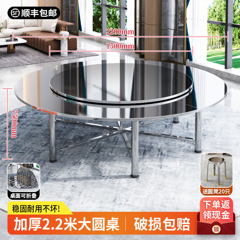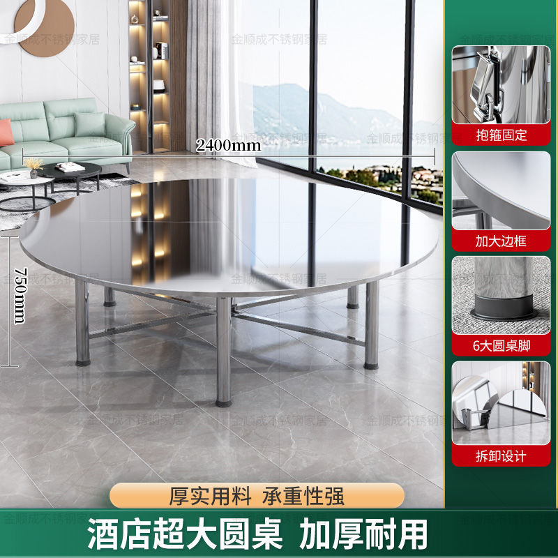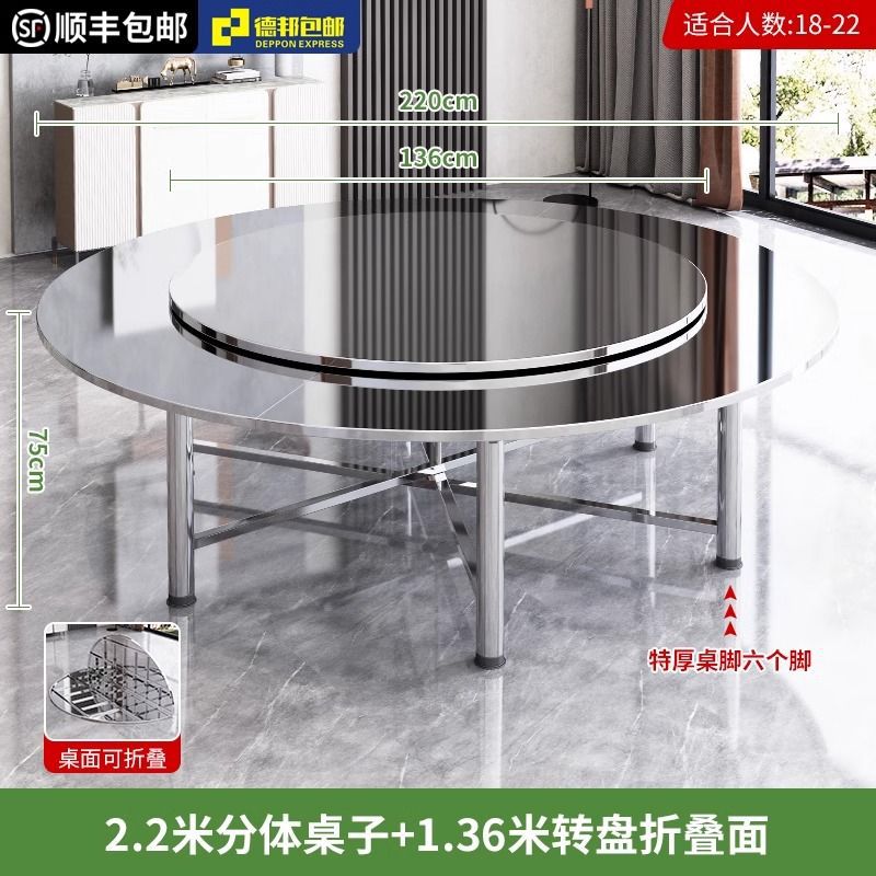 304 두꺼운 스테인레스 스틸 접이식 원형 테이블 턴테이블 가정용 상업용 호텔 야외 식사 원형 테이블 식탁스토어 가기