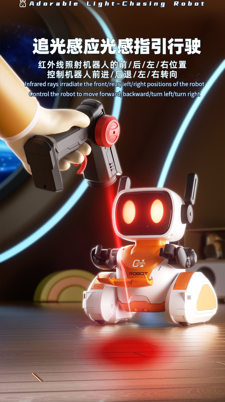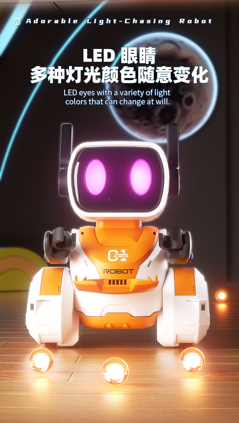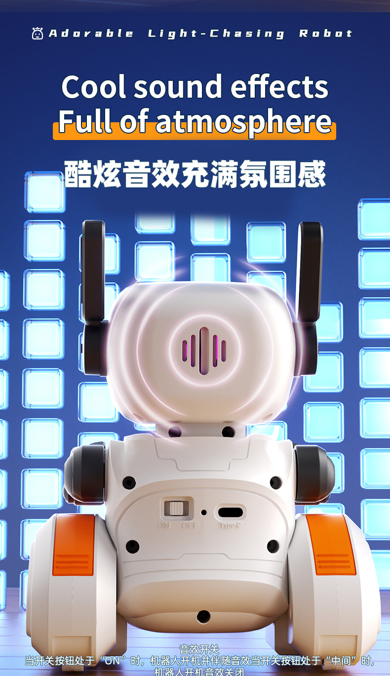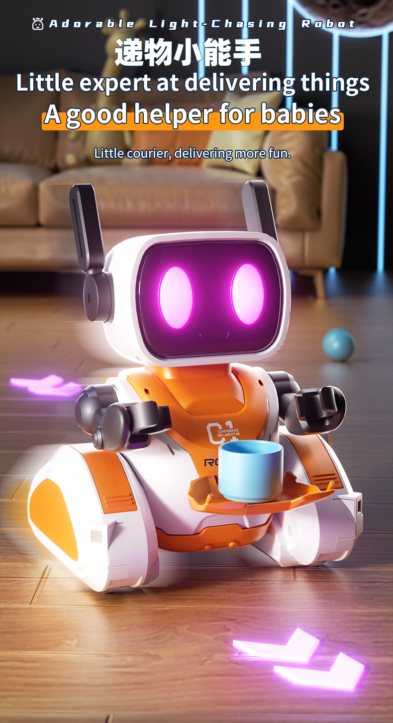 产品卖点:智能红外感应追光,眼睛灯光可变色,带托盘可运输小物品,Q萌造型~~