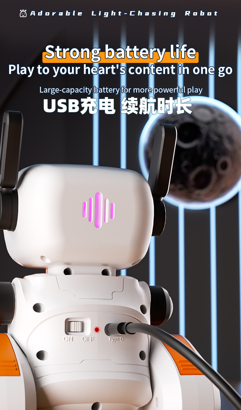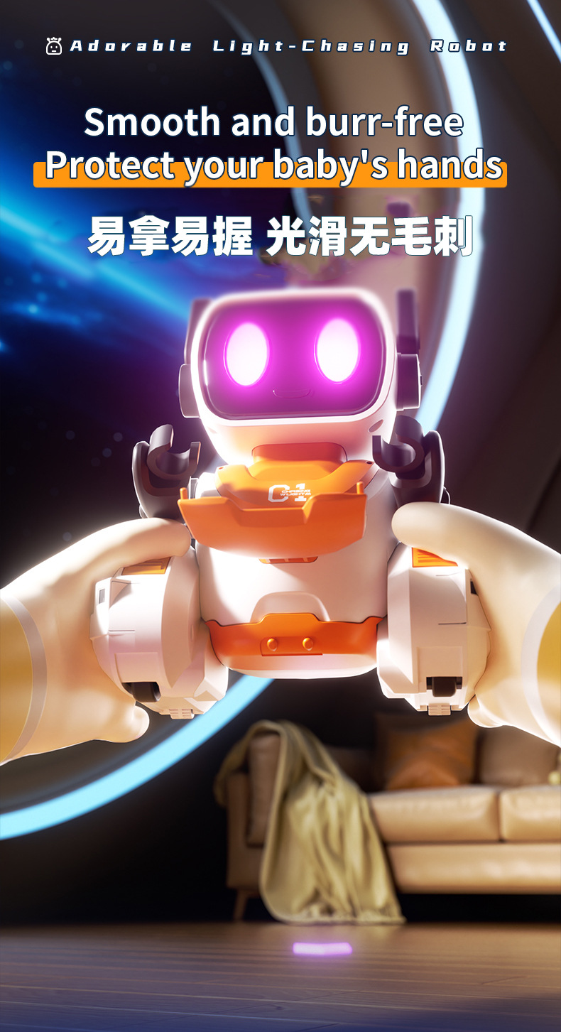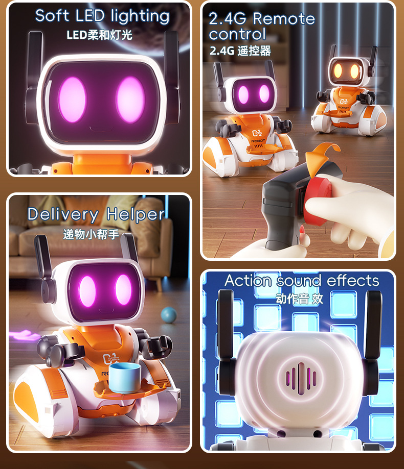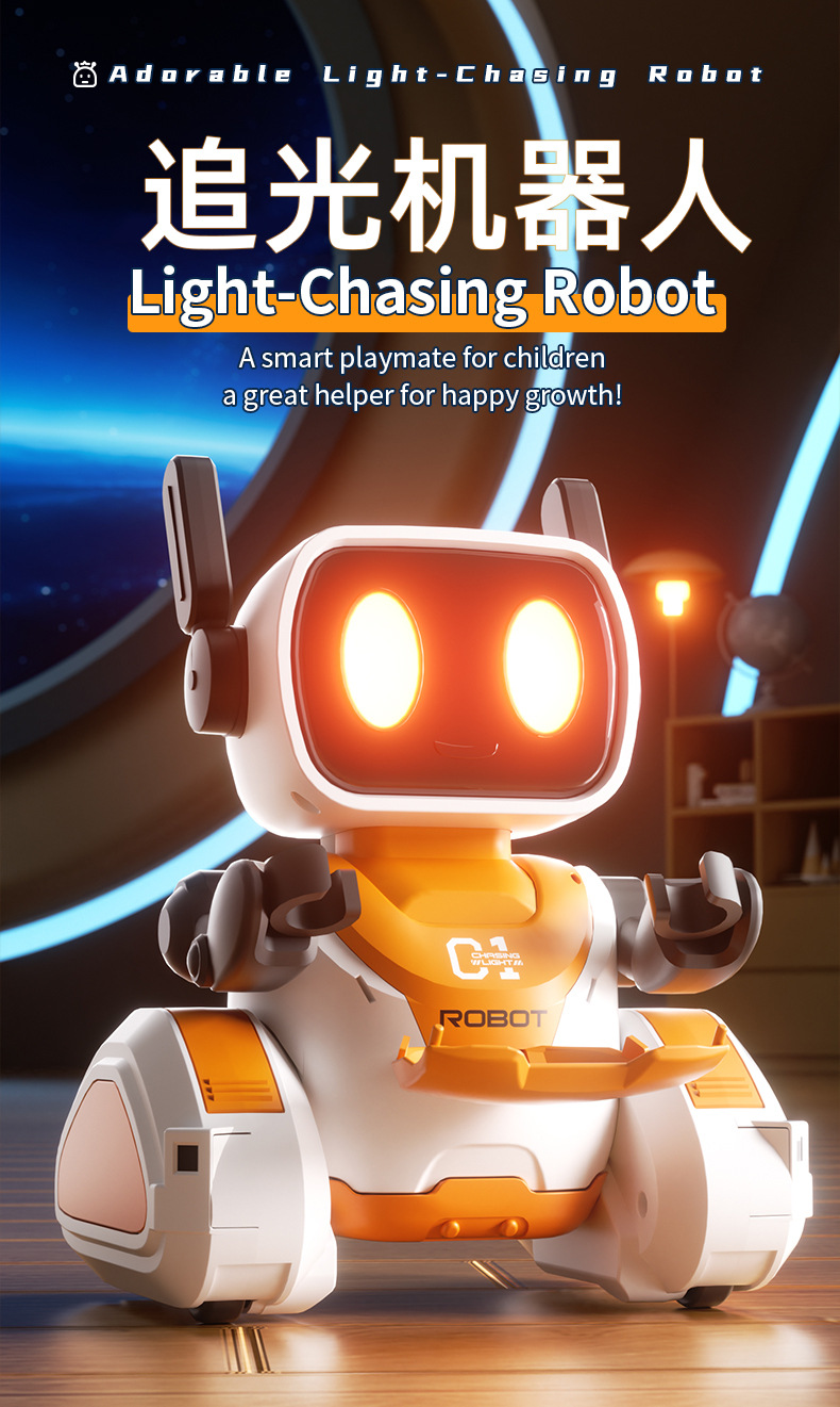 产品卖点:智能红外感应追光,眼睛灯光可变色,带托盘可运输小物品,Q萌造型~~