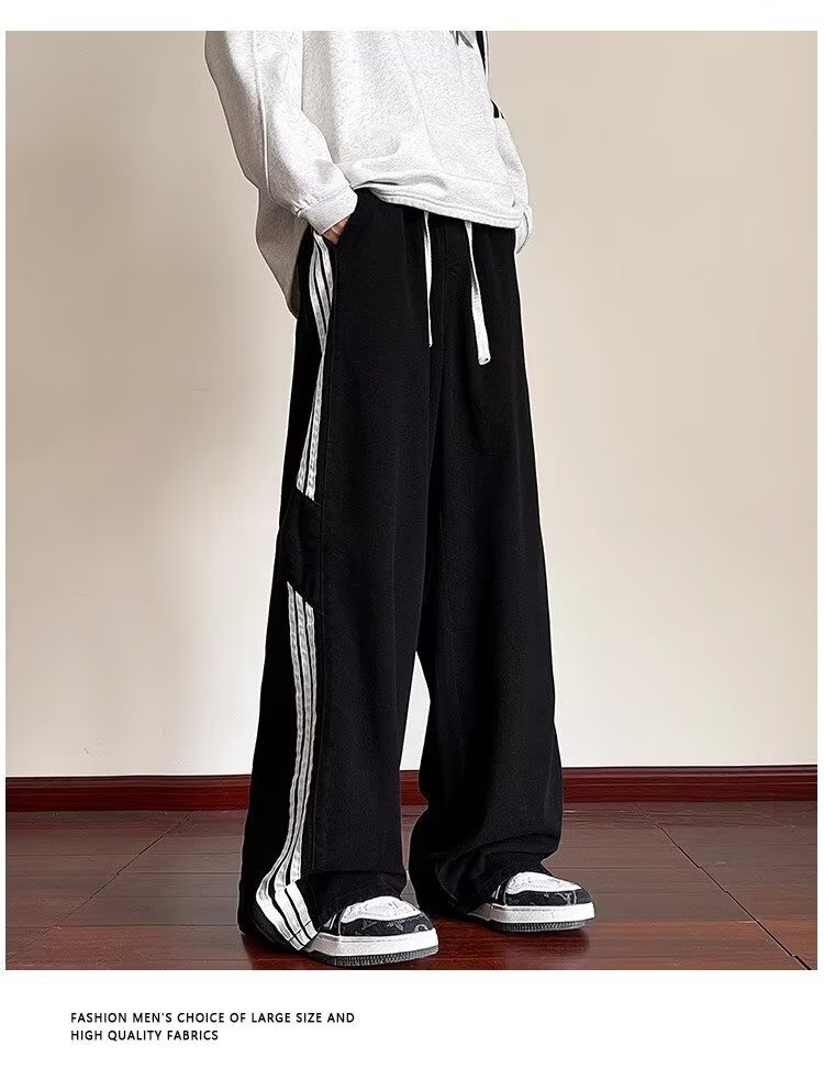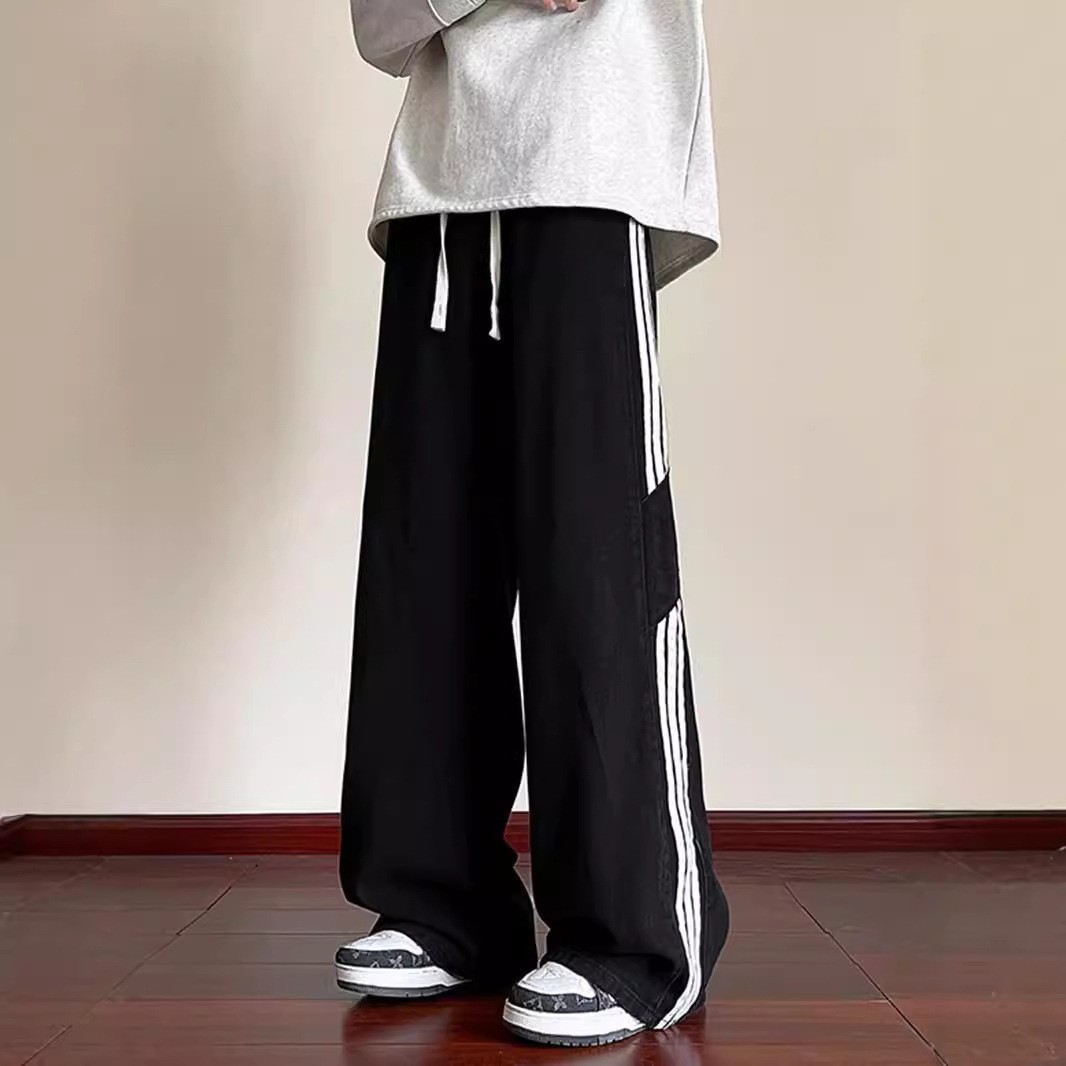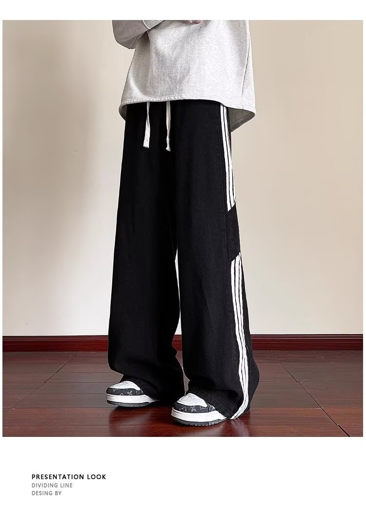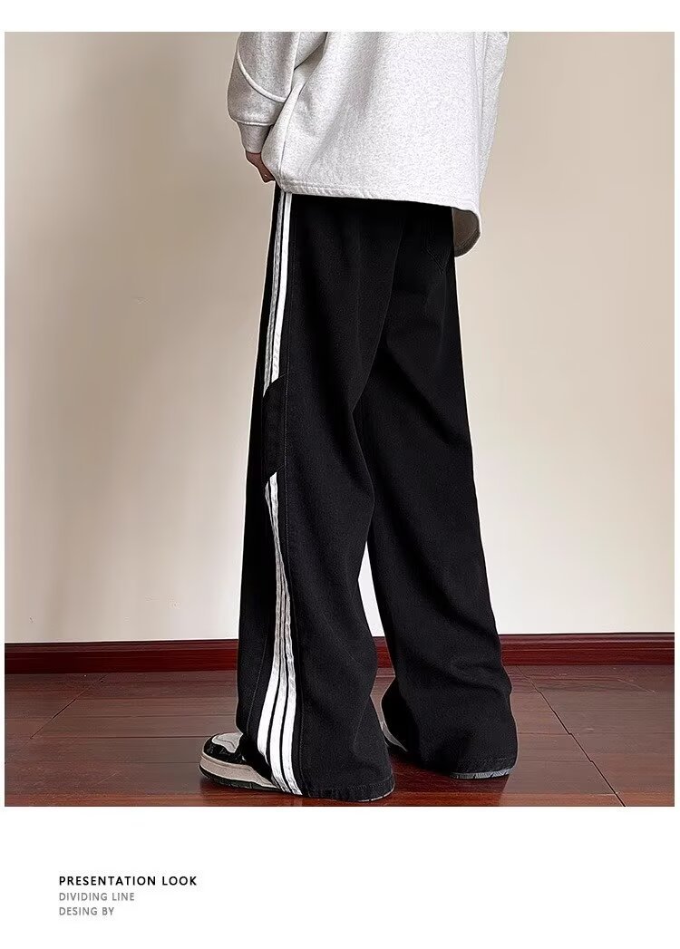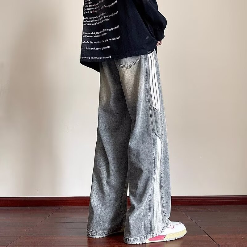 스트라이프 스플라이스 워싱 청바지 남성 가을 스트레이트 루즈 와이드 팬츠 아메리칸 레트로 캐주얼 바닥 길이 바지스토어 가기