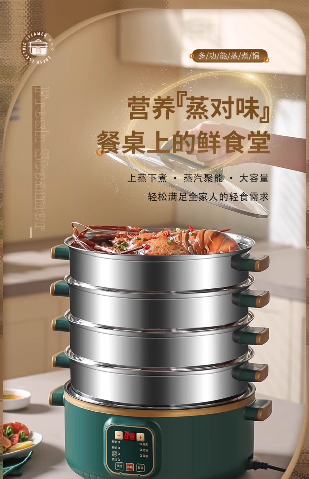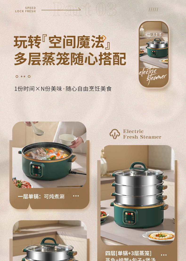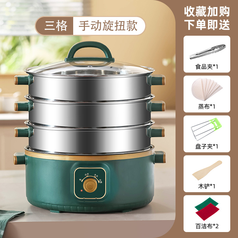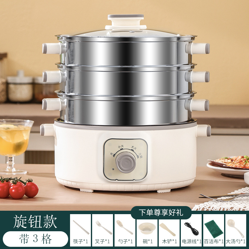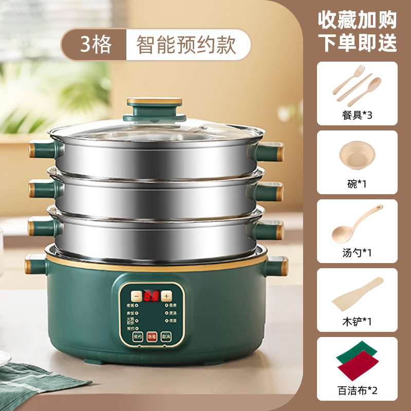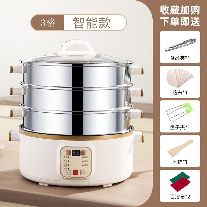 대용량 전기 찜통 가정용 3층 다기능 자동 전원 차단 찜통 조리 타이밍 다층 냄비 찜통스토어 가기