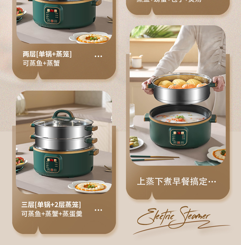 대용량 전기 찜통 가정용 3층 다기능 자동 전원 차단 찜통 조리 타이밍 다층 냄비 찜통