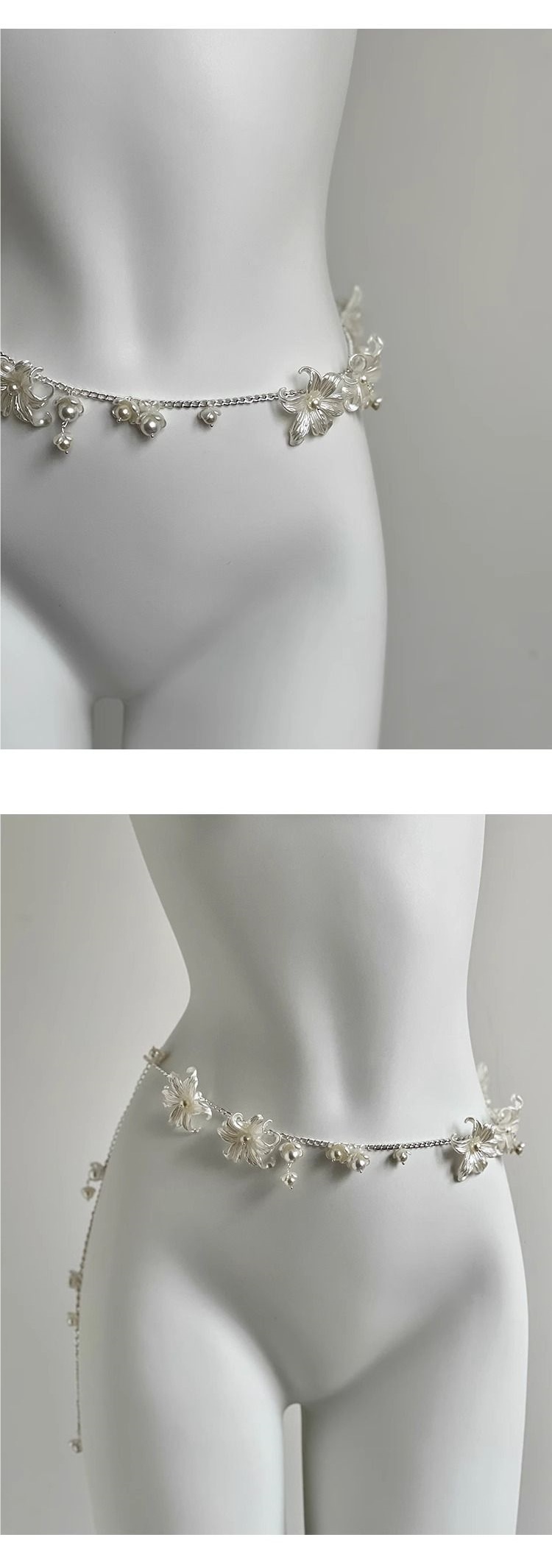 달빛 백합 허리 체인 복고풍 금속 요정 꽃 실버 진주 벨트 허리띠 목걸이 스웨터 체인 액세서리스토어 가기