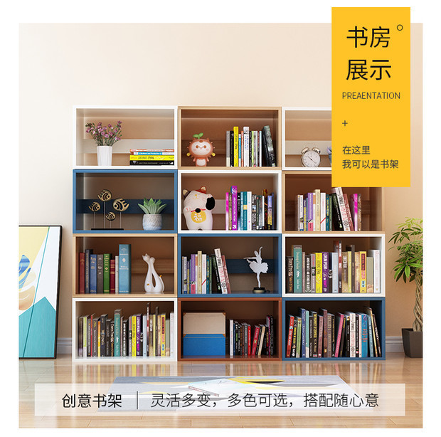 거실, 침실, 가정 학생을 위한 바닥 책장, 다층 수납 선반, 무료 조합 그리드 캐비닛, 간단한 데스크탑 책장스토어 가기
