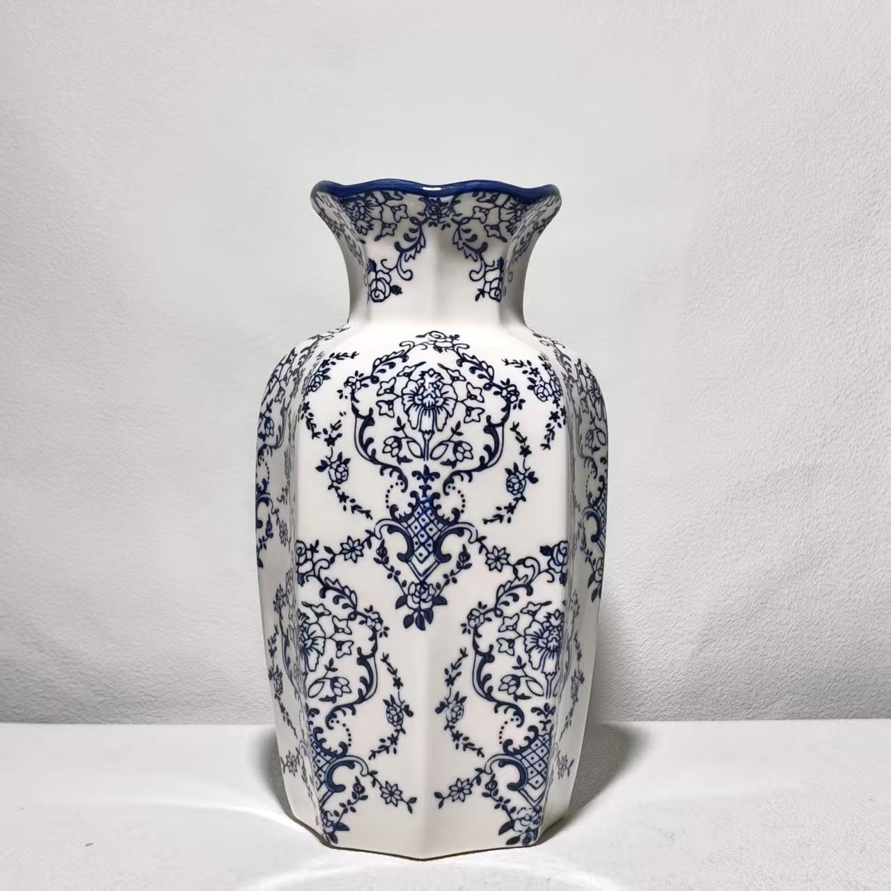 중국 고대 청화백자 레트로 도자기 꽃병 가정용 소품 거실용 도자기 꽃병 꽃꽂이 장식병
