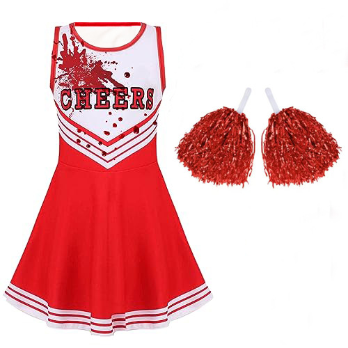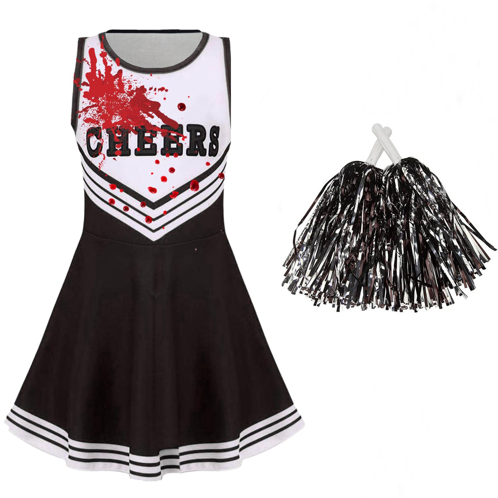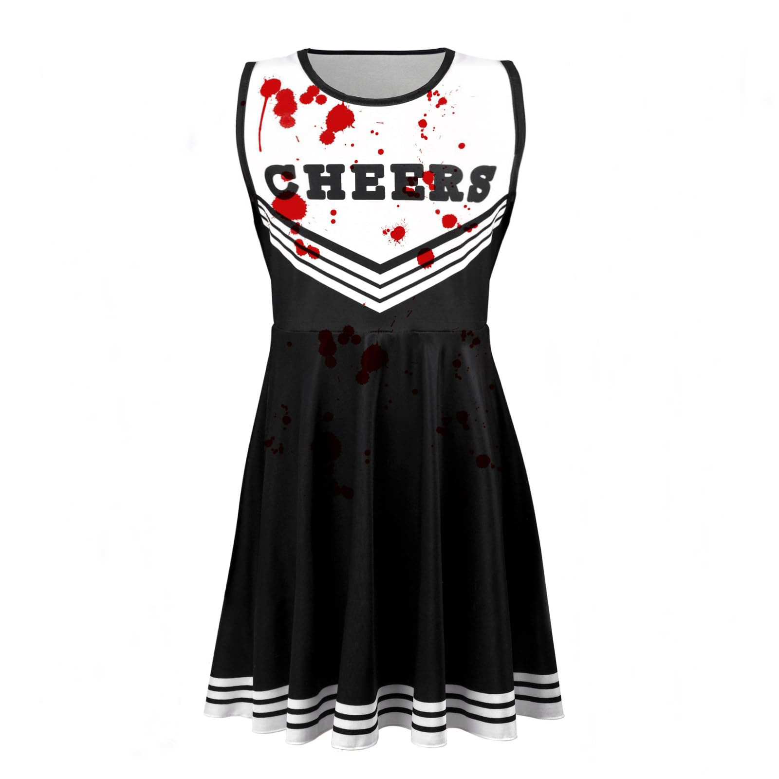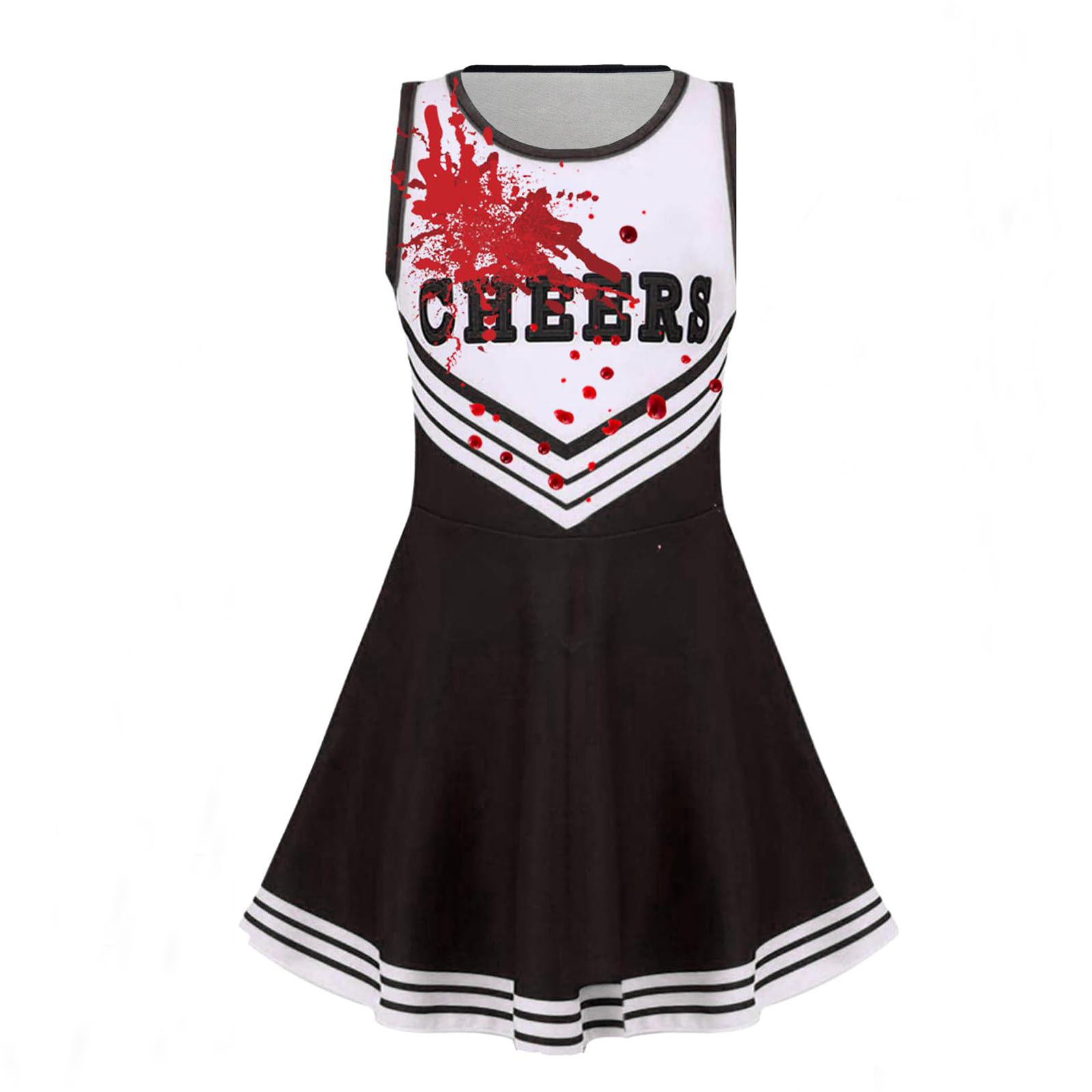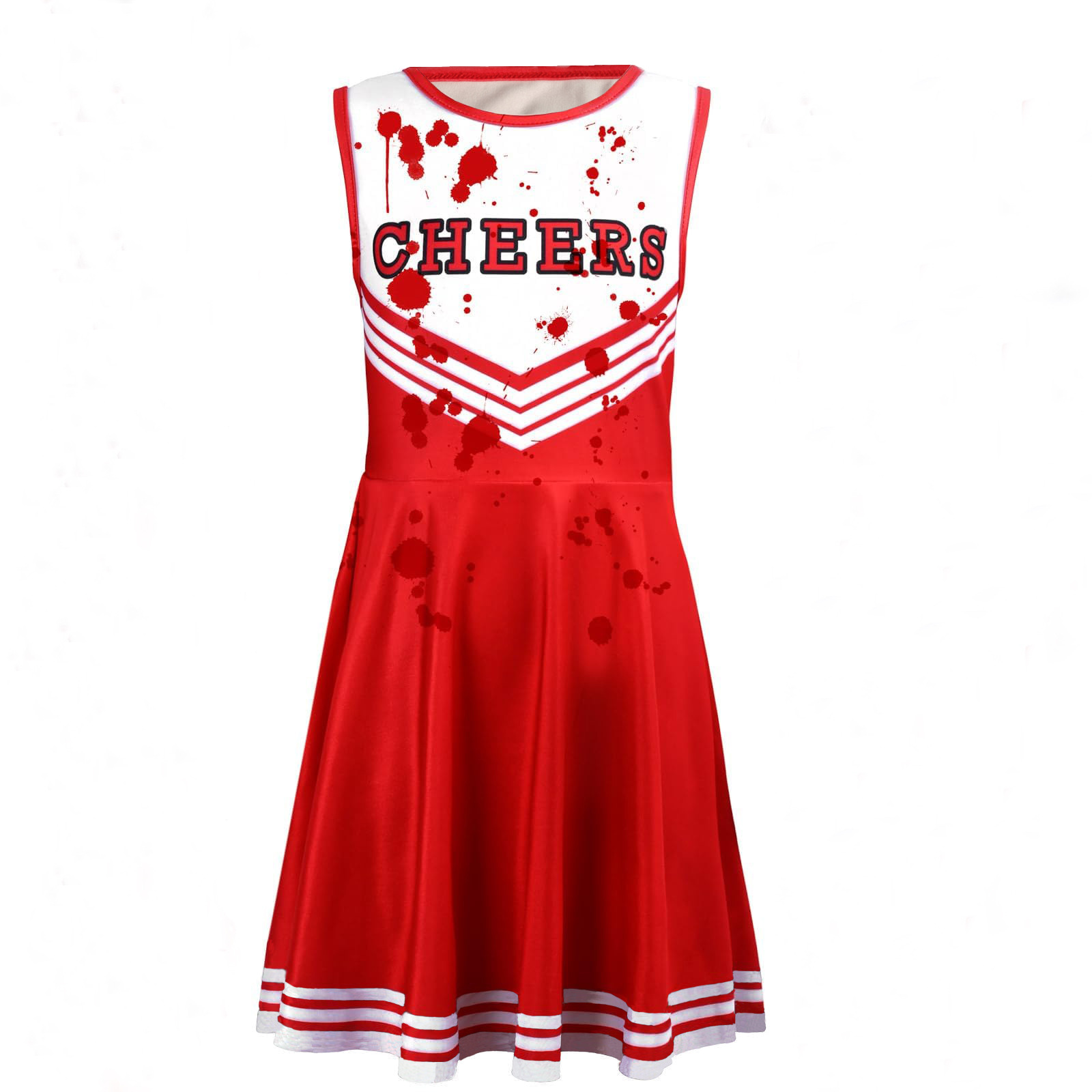 아마존 할로윈 공포 치어 리더 복장 민소매 메이크업 파티 무서운 피 묻은 코스프레 의상스토어 가기