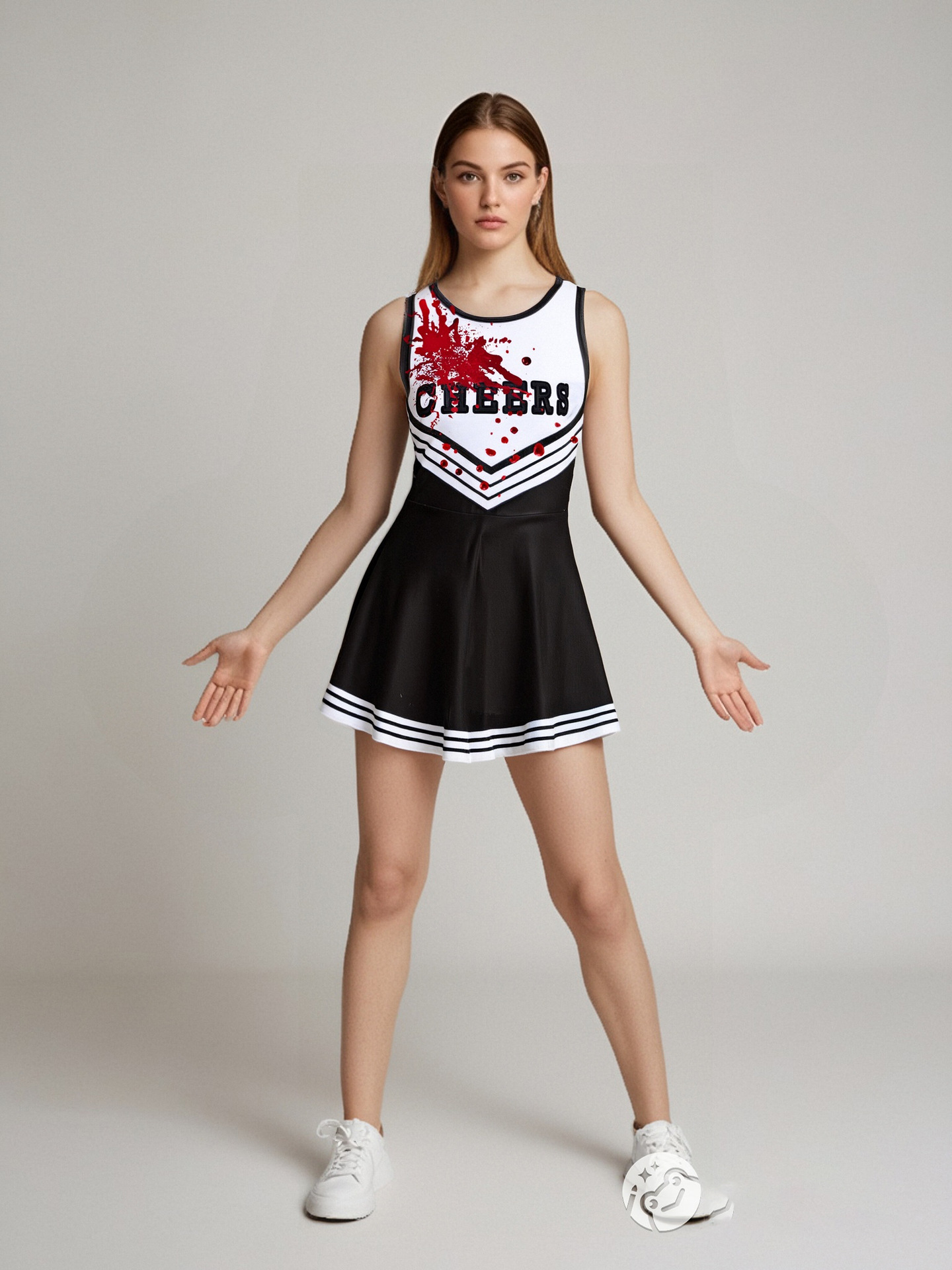 아마존 할로윈 공포 치어 리더 복장 민소매 메이크업 파티 무서운 피 묻은 코스프레 의상