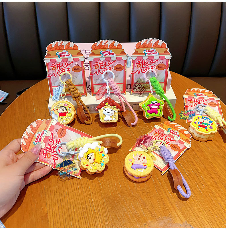 정품 크리 에이 티브 크레용 신짱 스윗하트 쿠키 키 체인 절묘한 음식 bestie 가방 펜던트 패션 키 체인스토어 가기