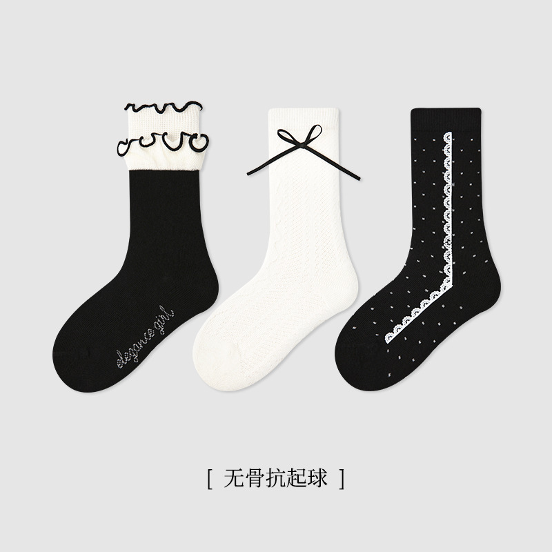 어린이 양말 도매 2025 가을, 겨울 새로운 흑백 활 소녀 중간 튜브 양말 면화 골이없는 어린이 양말스토어 가기