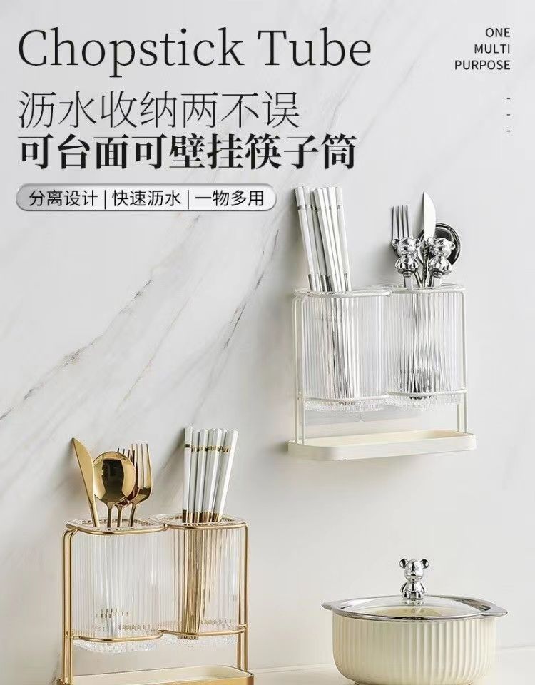 벽걸이형 젓가락 보관함, 젓가락 케이지, 주방용 경량 고급형, 새로운 배수구 및 구멍이 있는 투명 보관함, 가정용 젓가락통스토어 가기