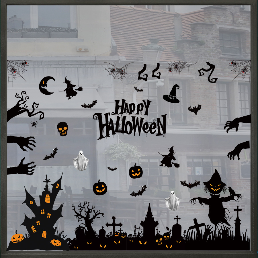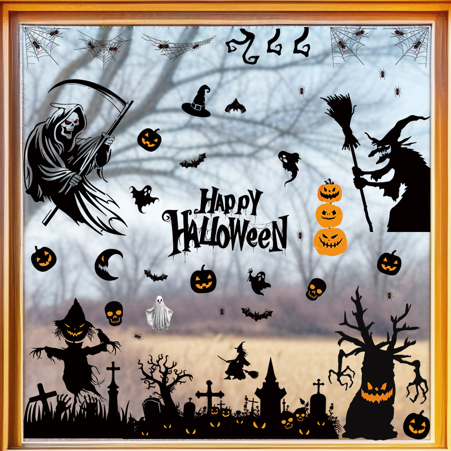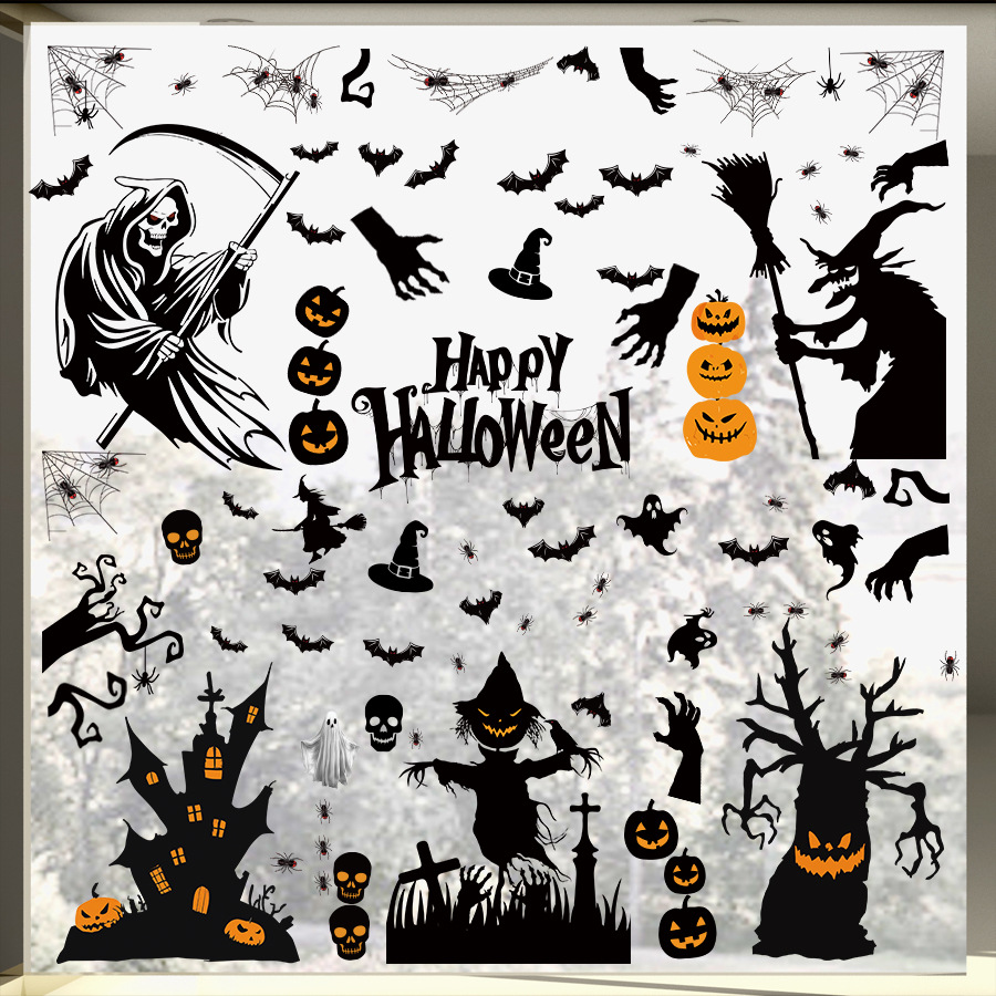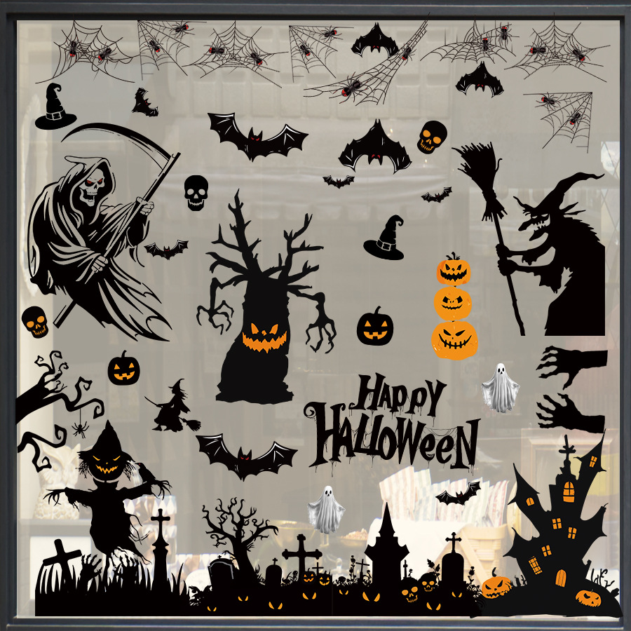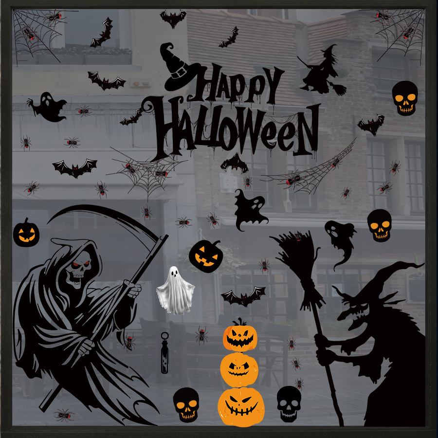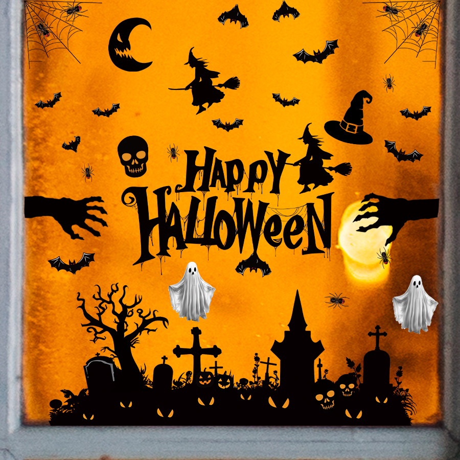 2026 크로스 보더 새로운 할로윈 파티 정전기 접착제없는 창 스티커 해골 거미 해피 할로윈스토어 가기