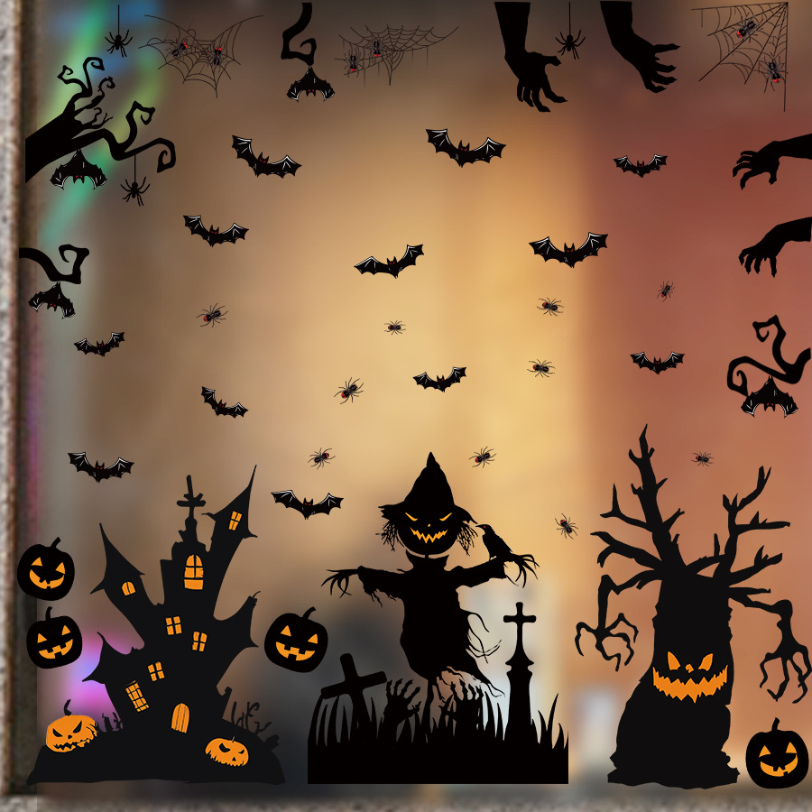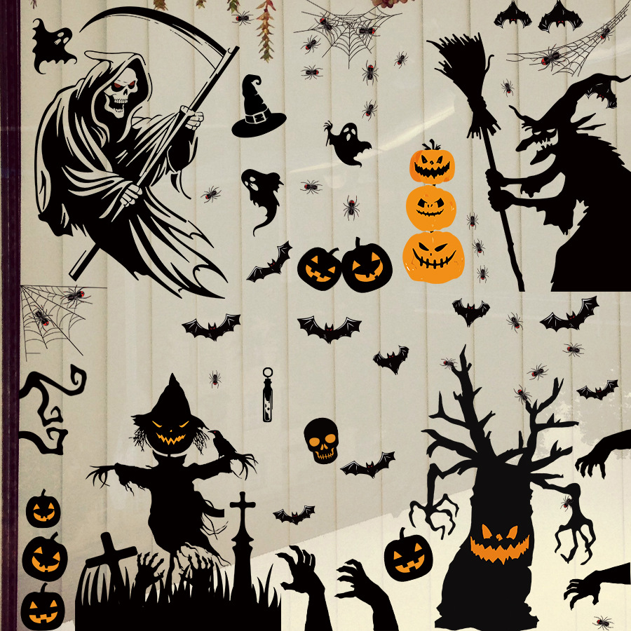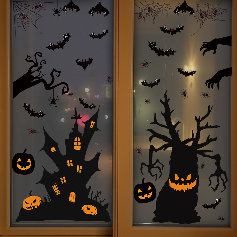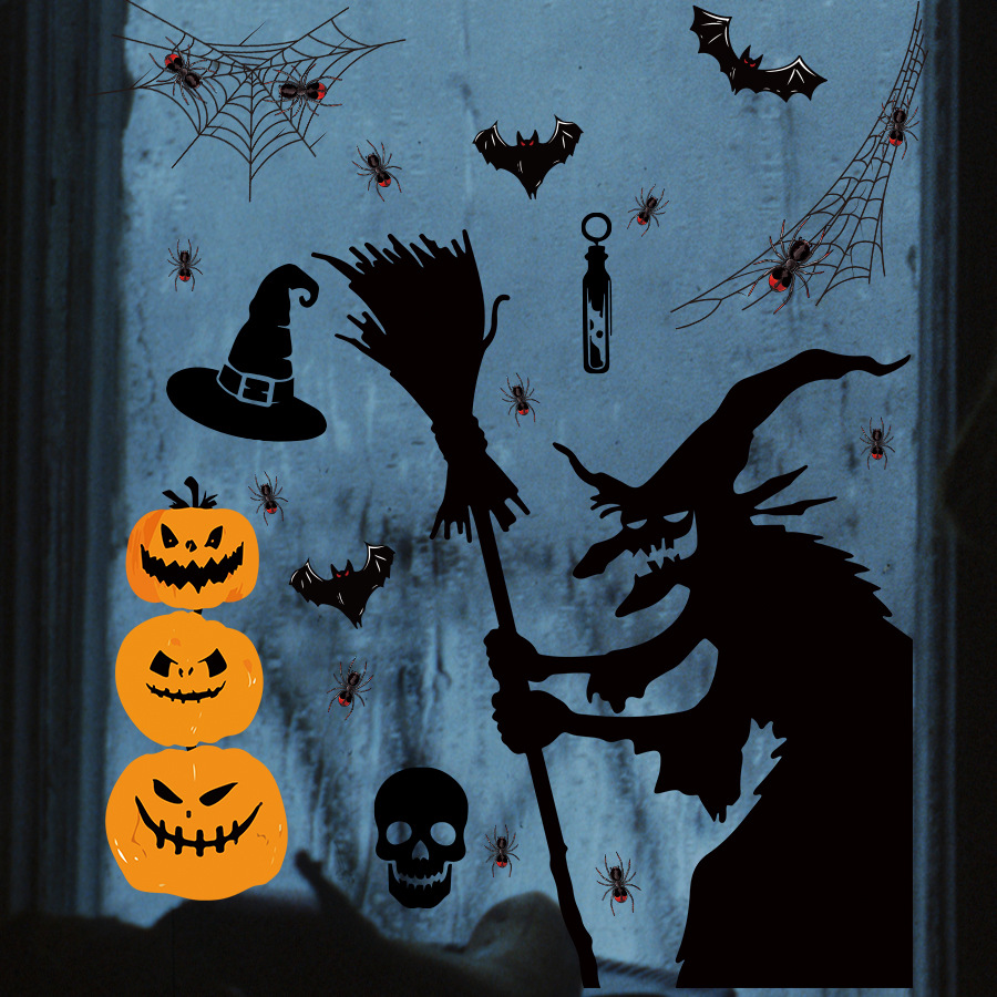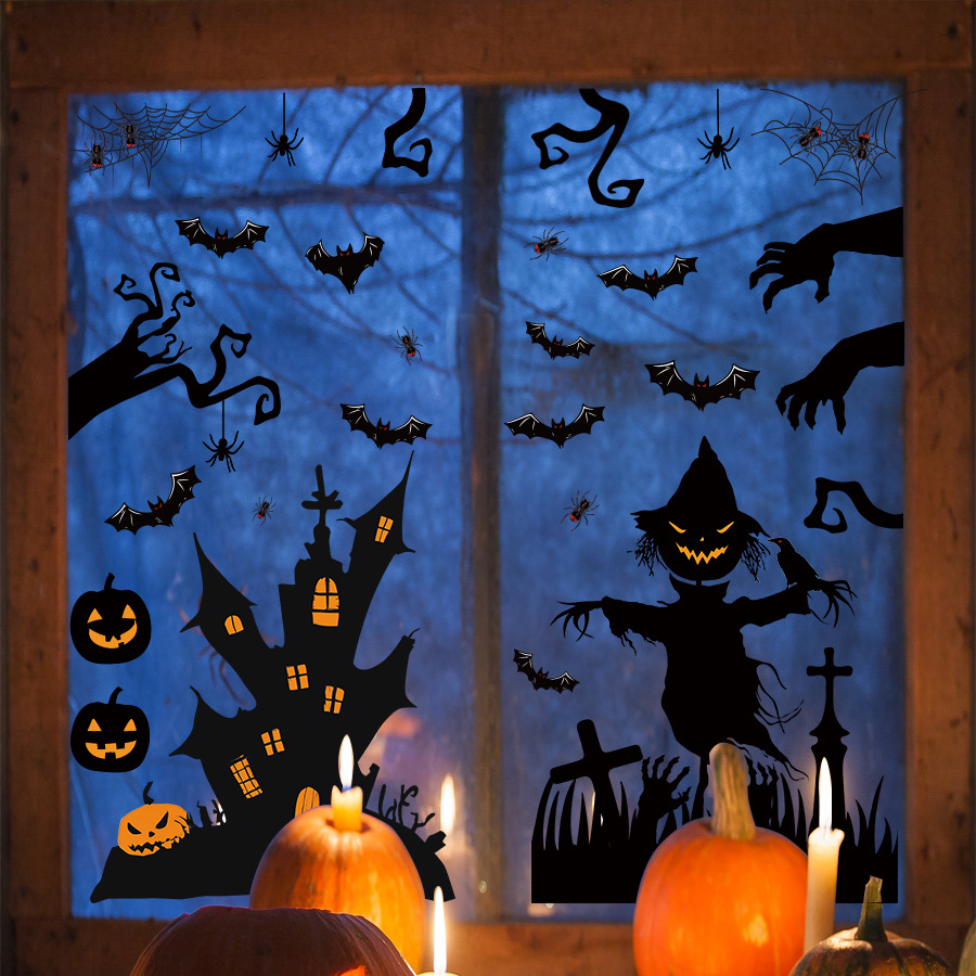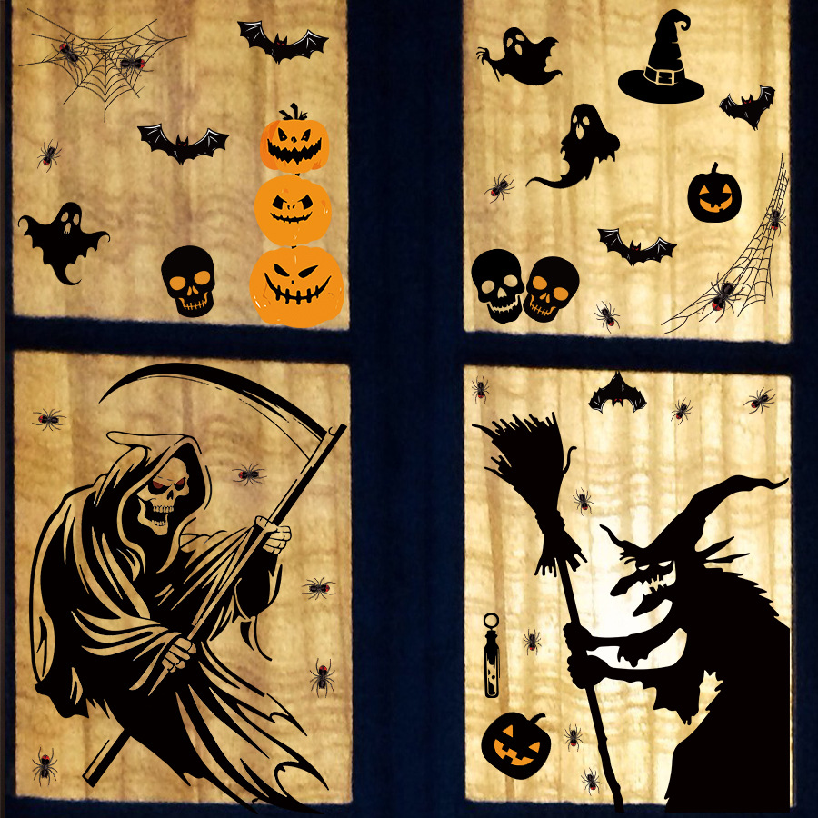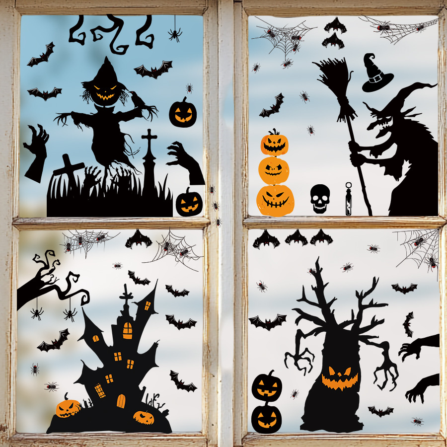 2026 크로스 보더 새로운 할로윈 파티 정전기 접착제없는 창 스티커 해골 거미 해피 할로윈스토어 가기