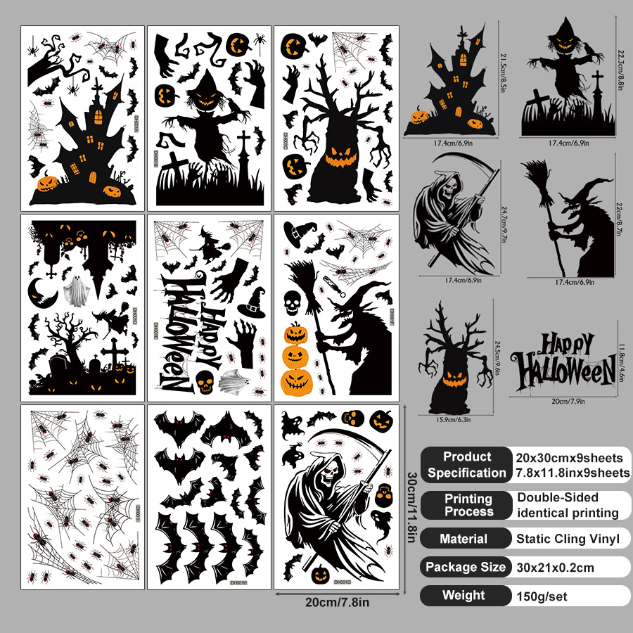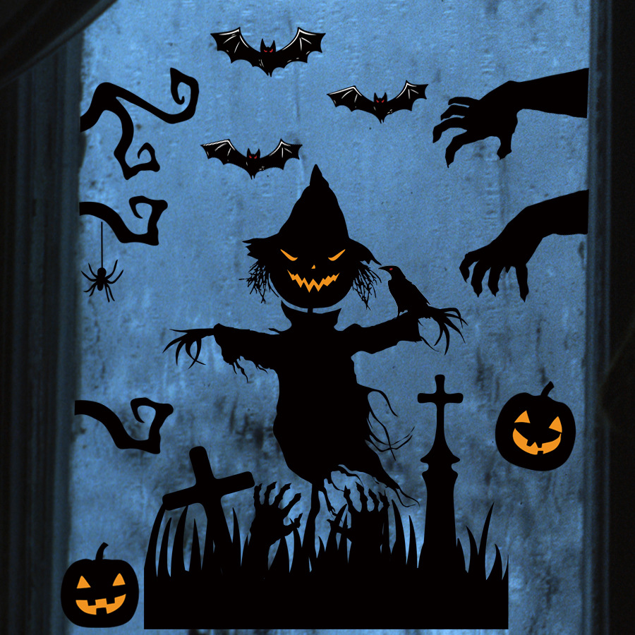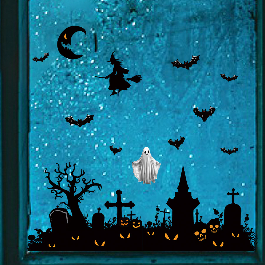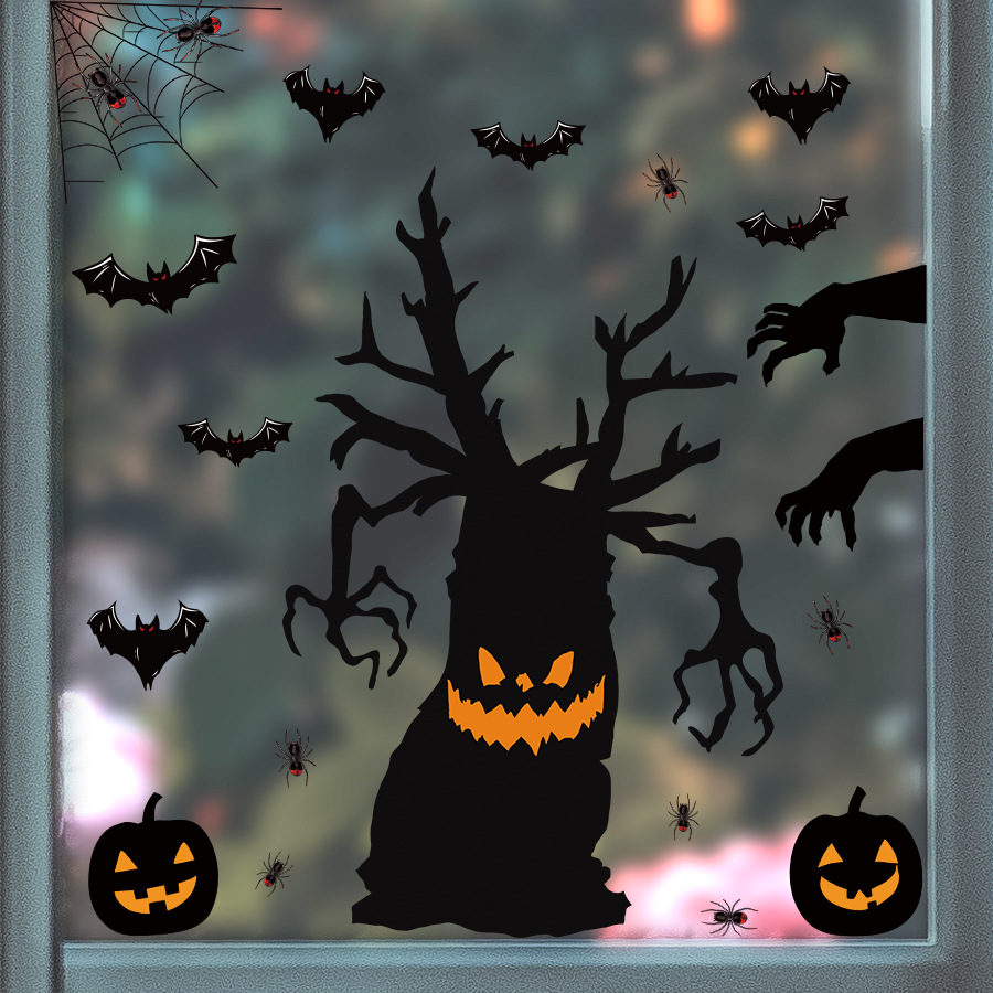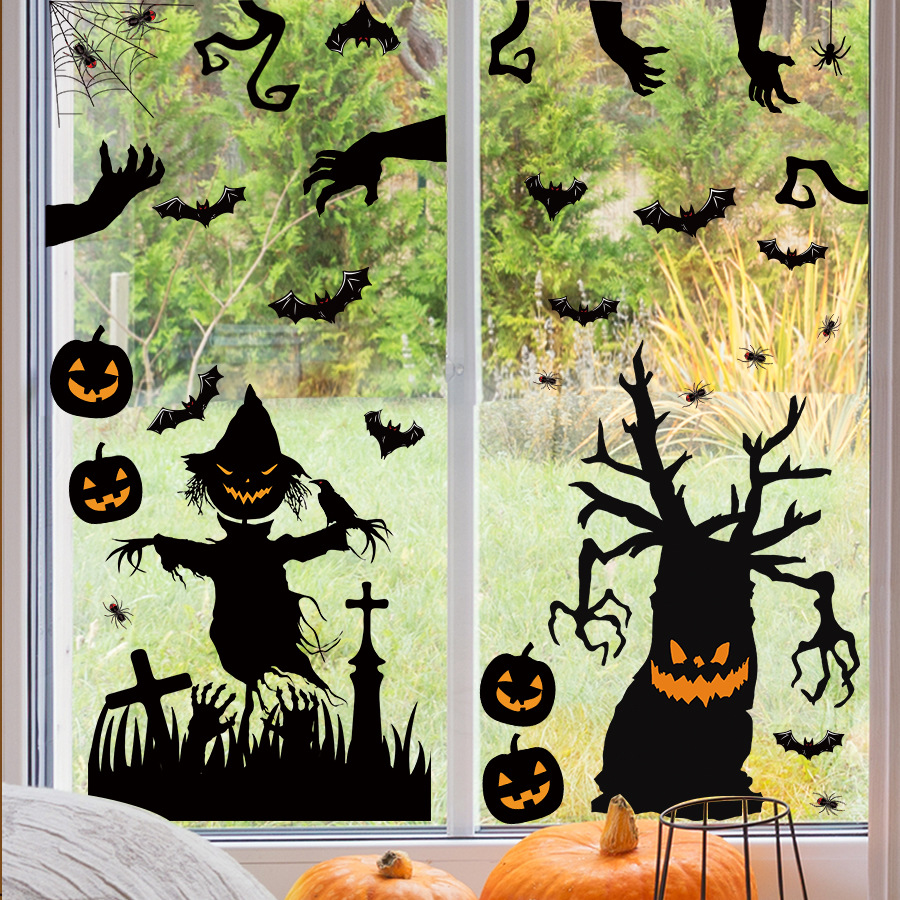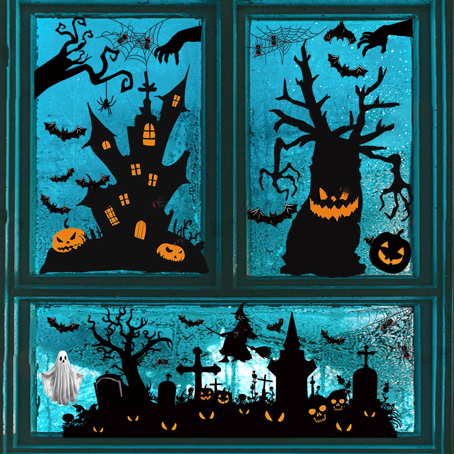 2026 크로스 보더 새로운 할로윈 파티 정전기 접착제없는 창 스티커 해골 거미 해피 할로윈스토어 가기