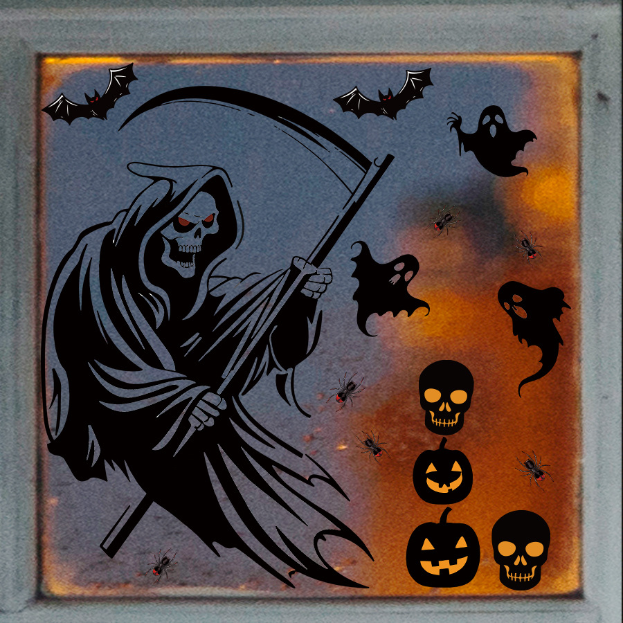 2026 크로스 보더 새로운 할로윈 파티 정전기 접착제없는 창 스티커 해골 거미 해피 할로윈
