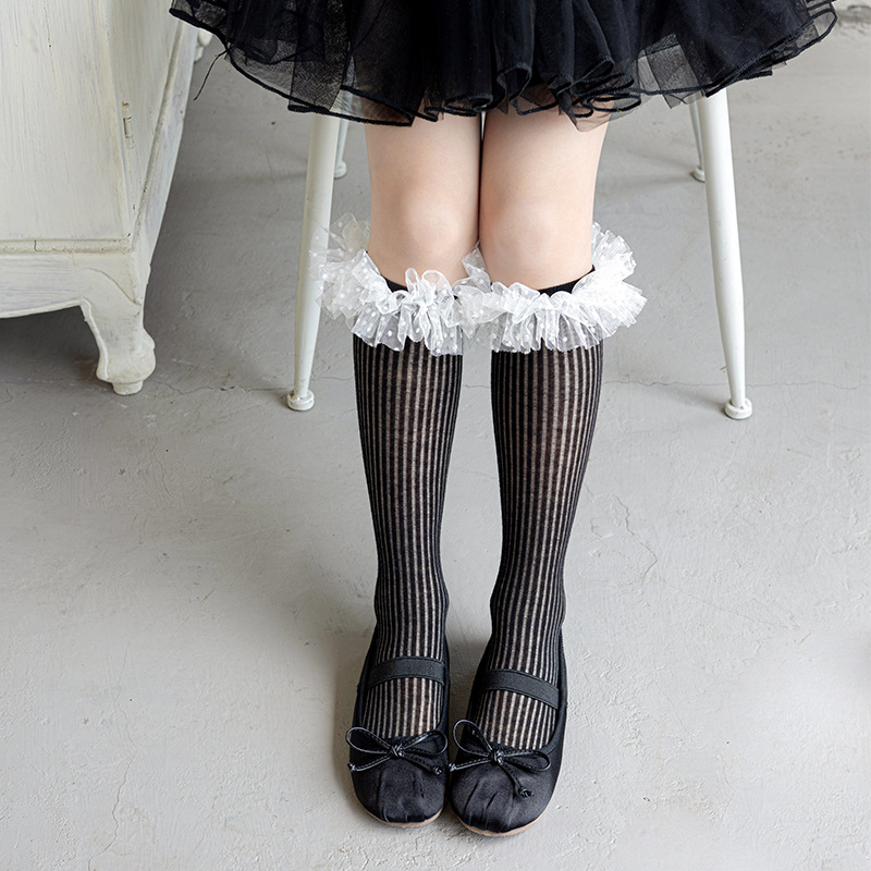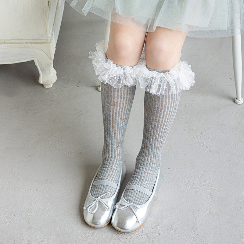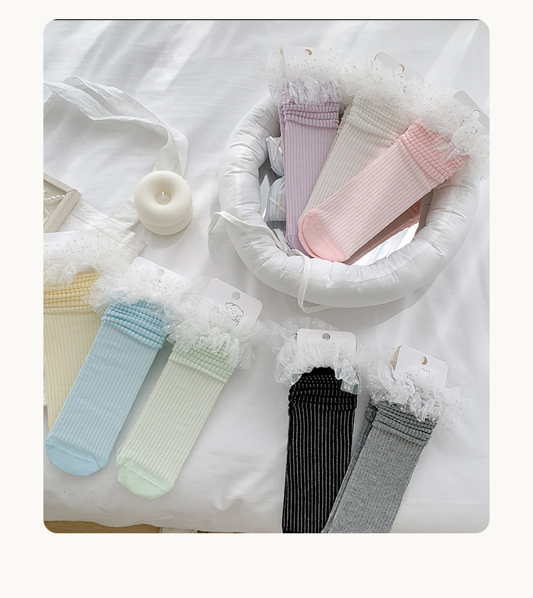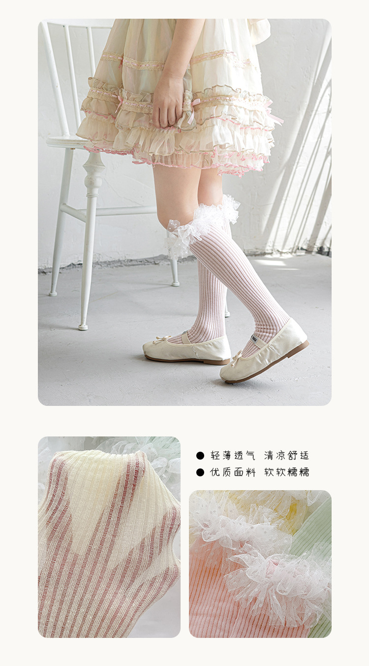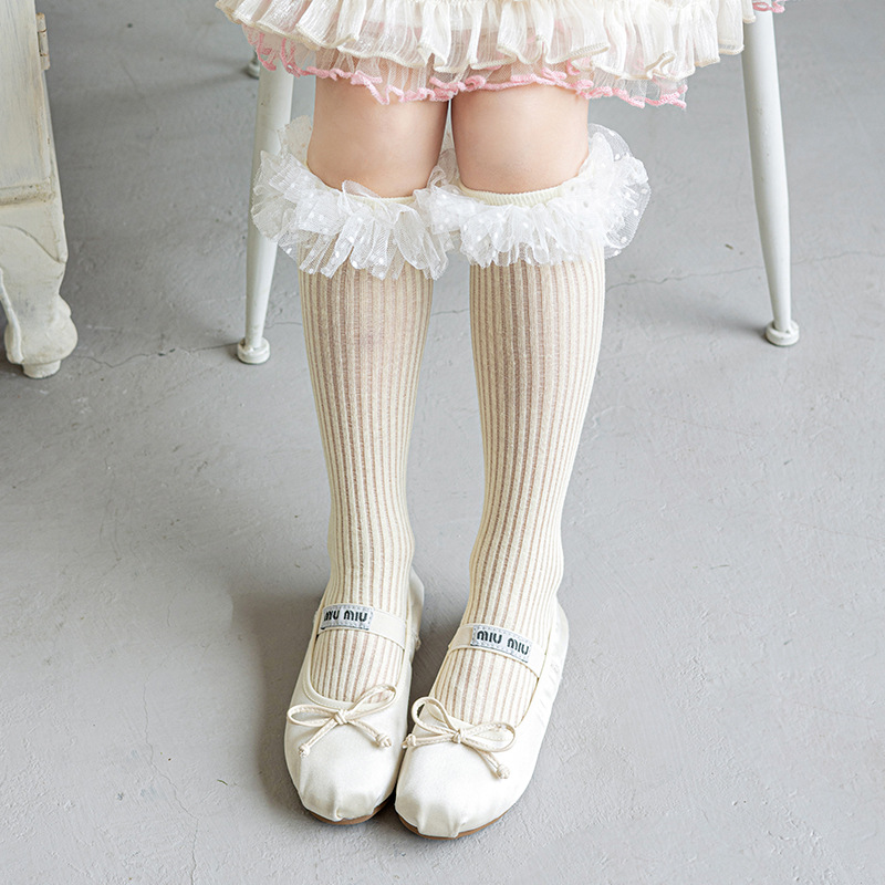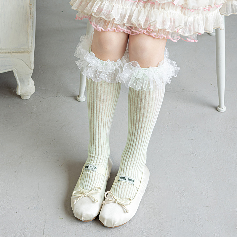 Misscucudog 소녀 양말 봄과 여름 얇은면 양말 레이스 로리타 한국 소녀 공주 뼈없는
