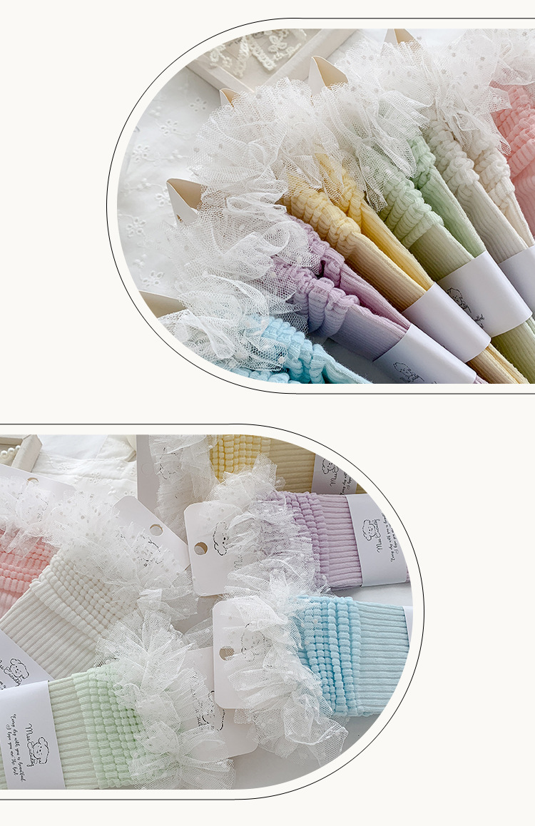 Misscucudog 소녀 양말 봄과 여름 얇은면 양말 레이스 로리타 한국 소녀 공주 뼈없는스토어 가기