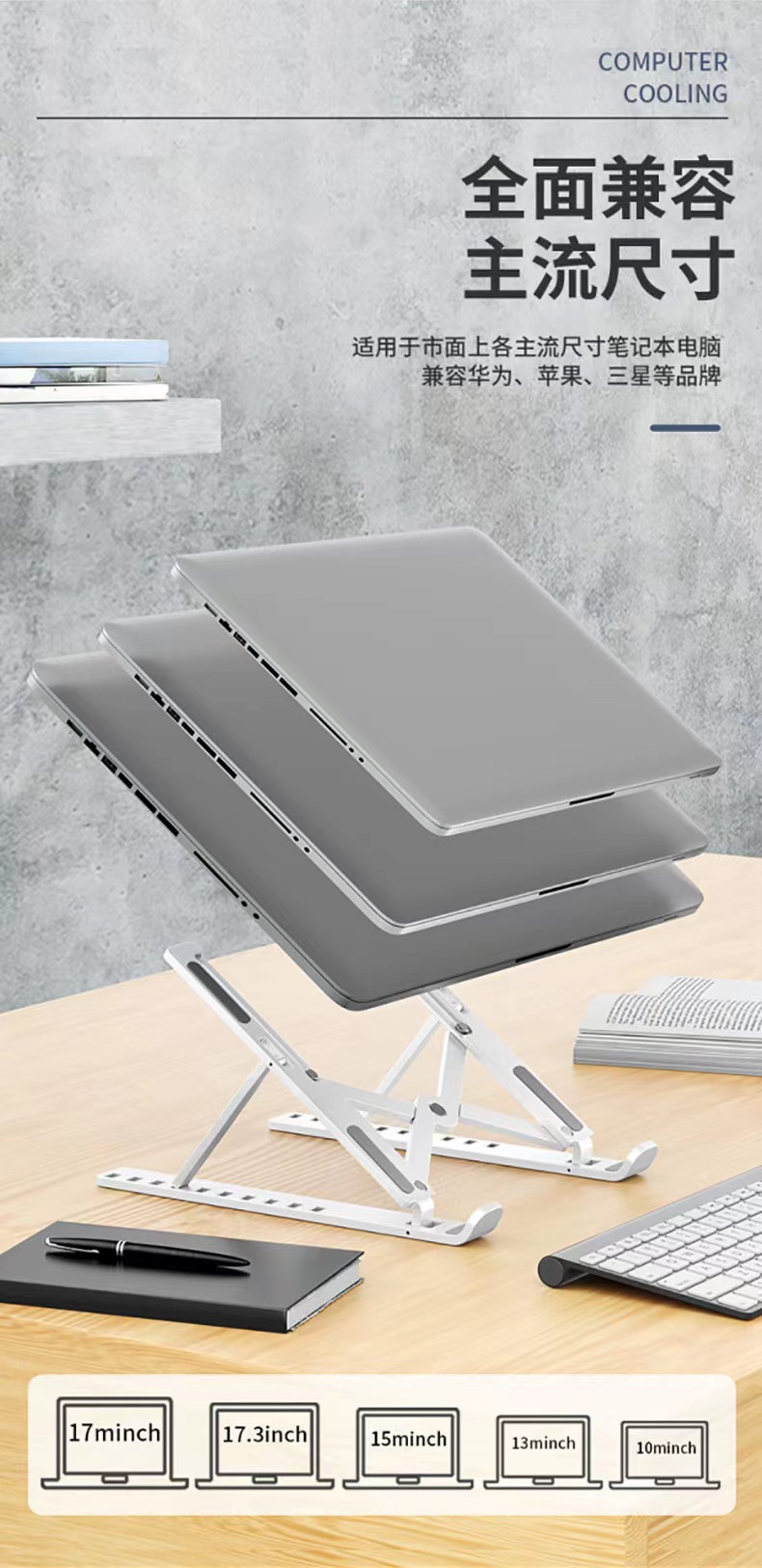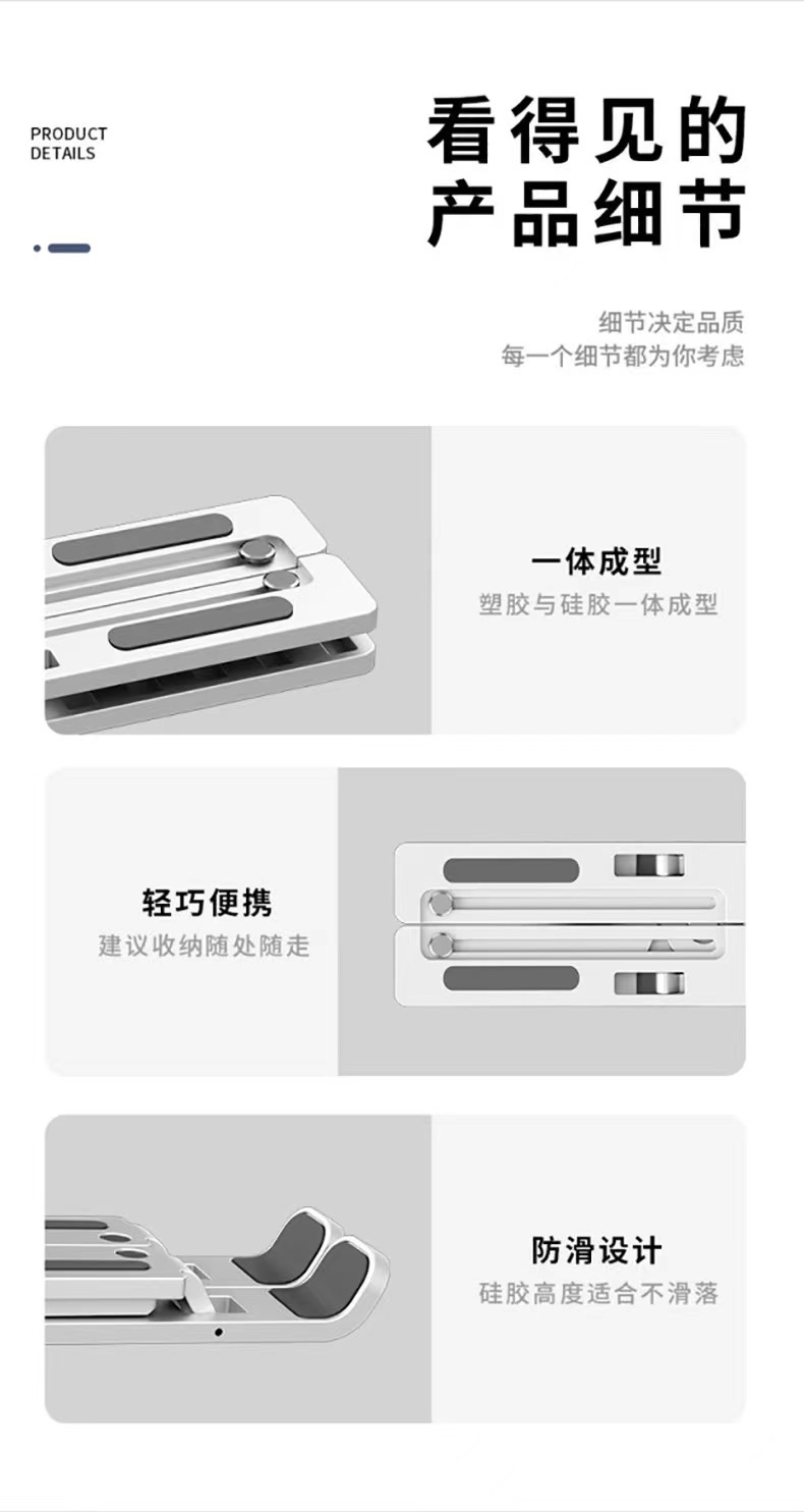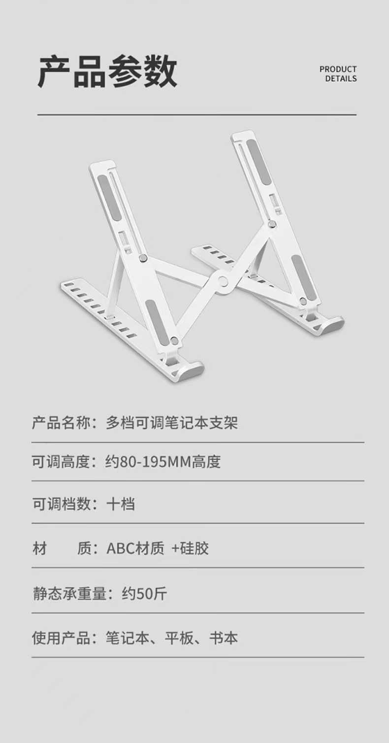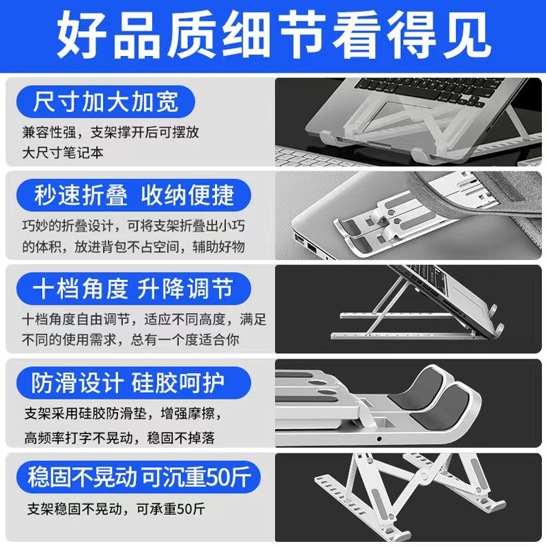 노트북 스탠드, 접이식 리프팅, 휴대용 냉각 랙, 높이 조절 랙, 조절 가능한 보관 지지대, 안정적인 지지대