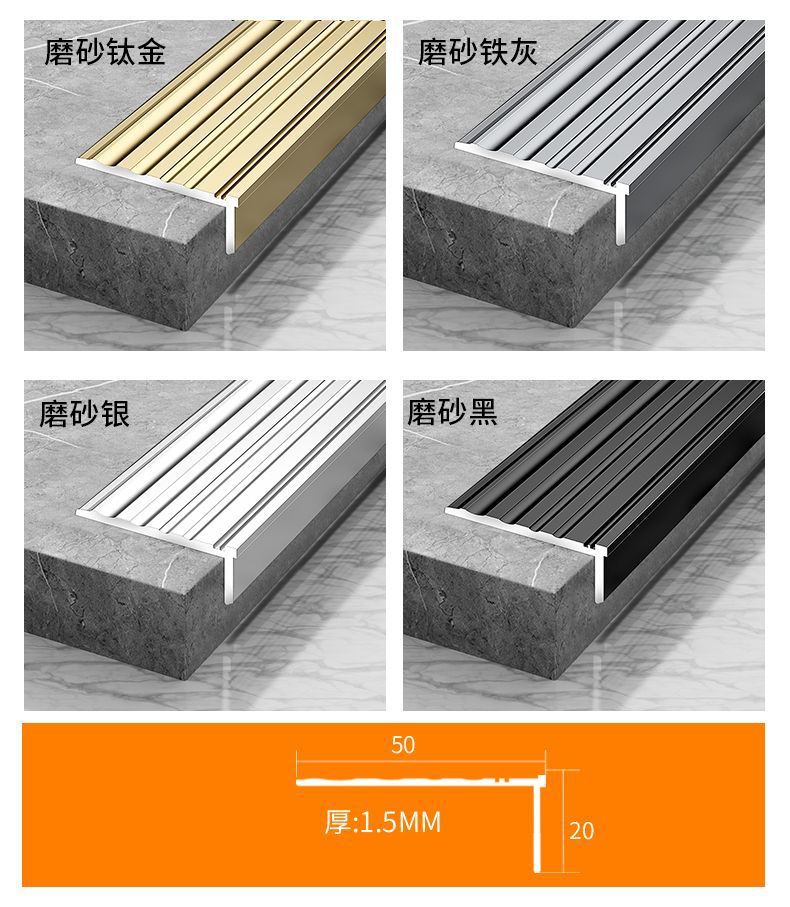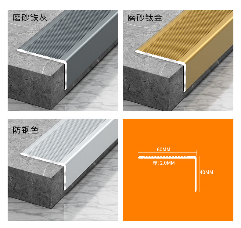 알루미늄 합금 계단 미끄럼 방지 스트립, 실외 계단 가장자리 스트립, 금속 직각 대리석 프레스 스트립, 코너 보호 스트립