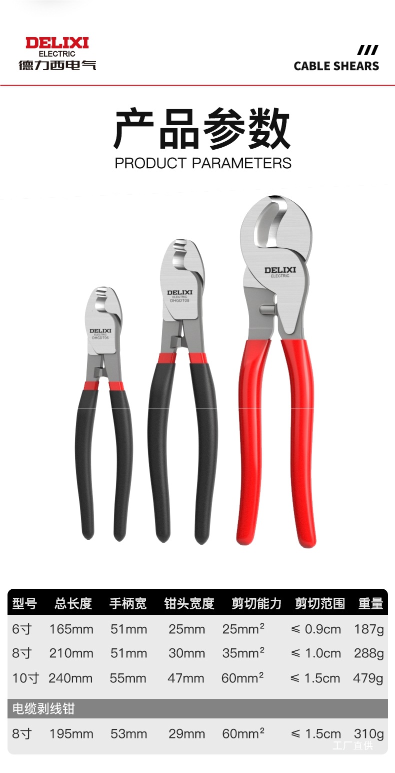 Delixi 전기 케이블 가위, 와이어 커터, 와이어 스트리퍼, 전기 기술자 특수 도구, 와이어 커터, 구리 파이프 절단 가위