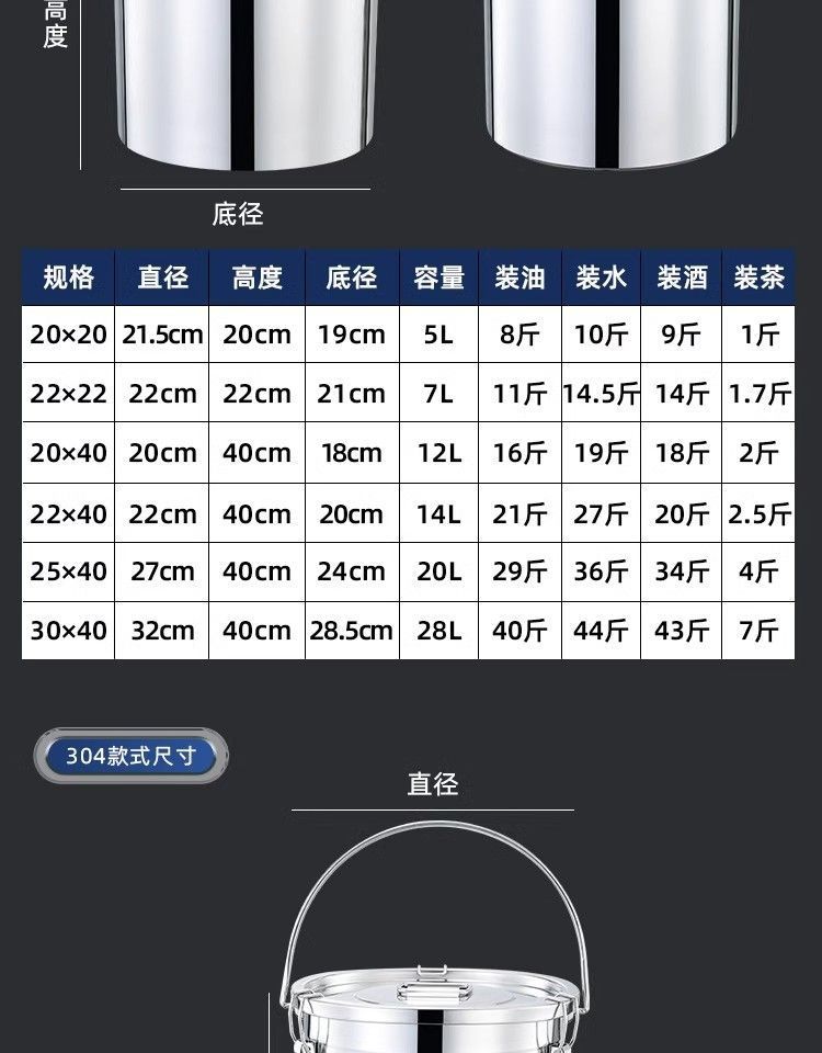 304 스테인레스 스틸 밀봉 버킷, 두꺼운 쌀 버킷, 버클 수프 버킷, 테이크아웃 식사 배달 버킷, 운송 버킷, 오일 버킷, 밀봉 버킷스토어 가기
