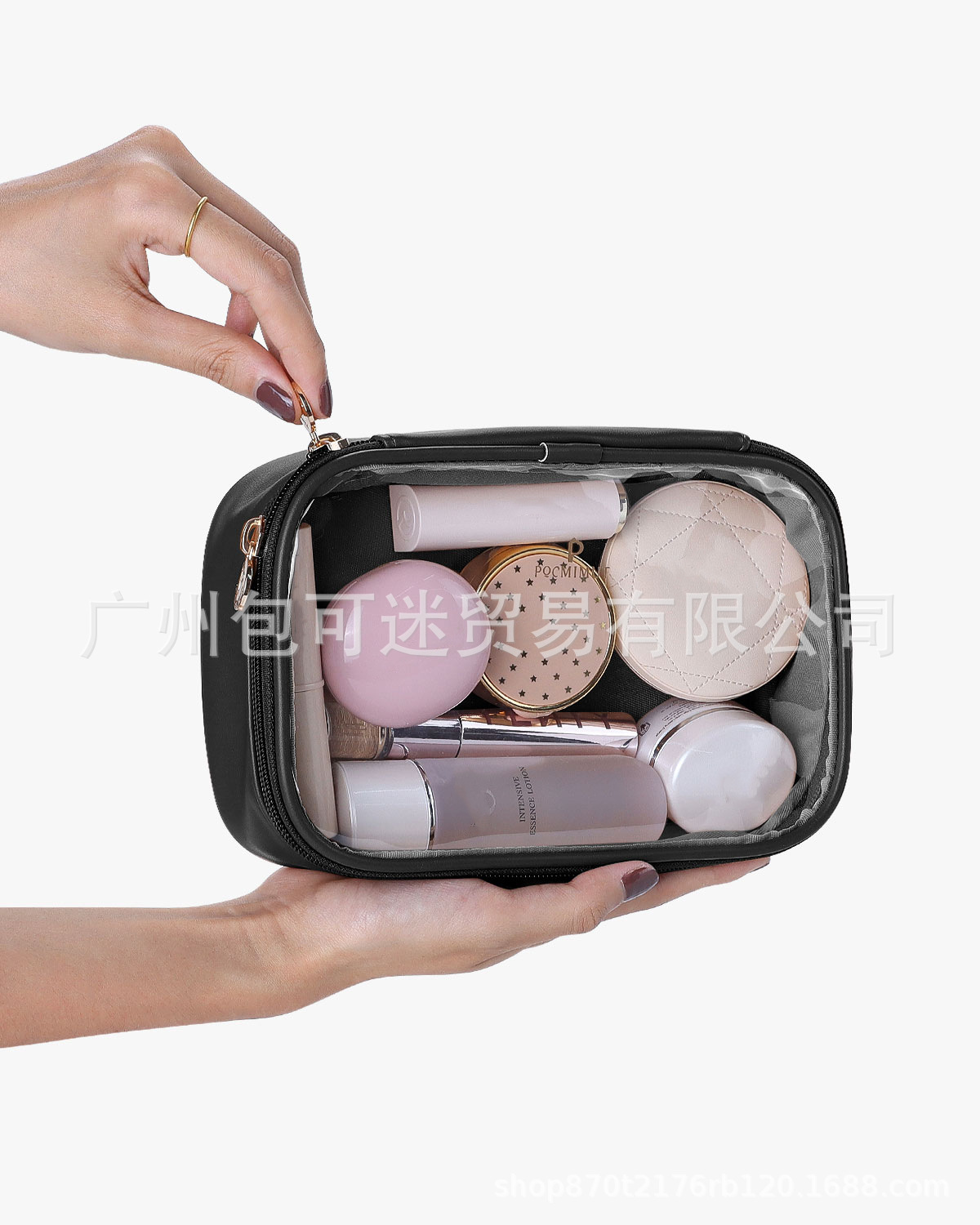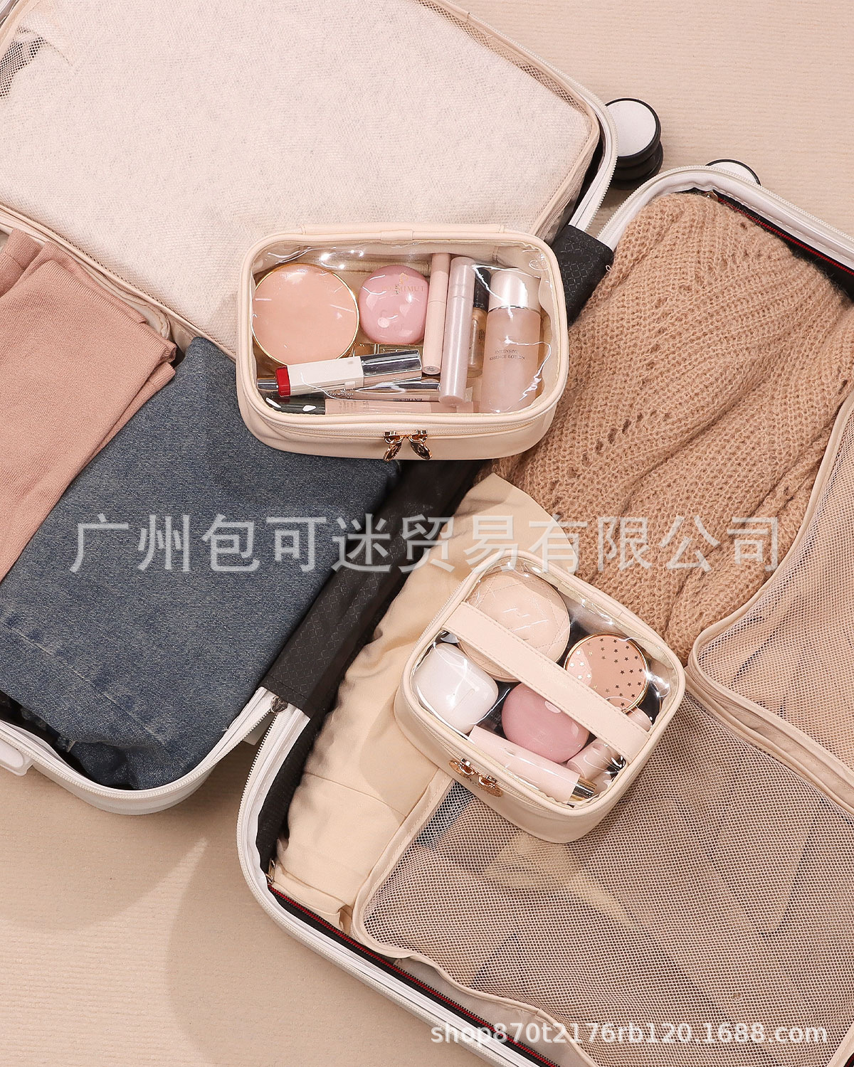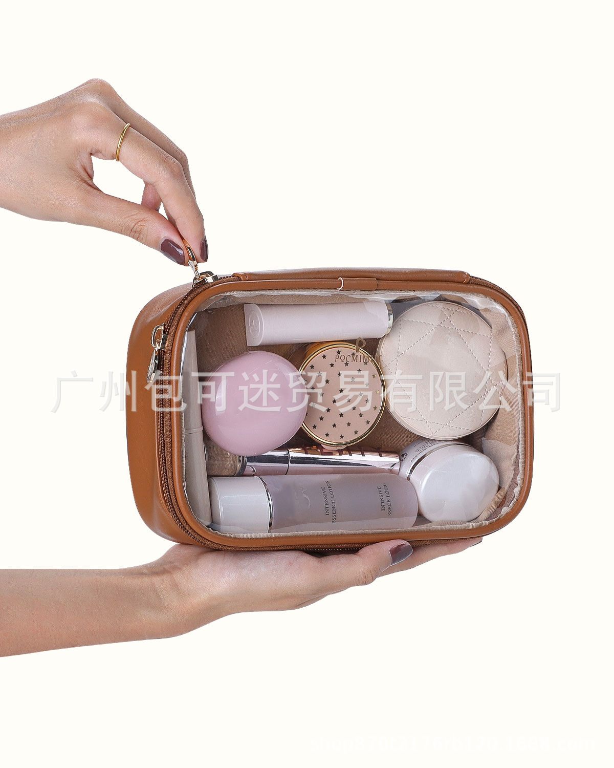 국경 간 Amazon 인기 PU 가죽 투명 여행 필수 화장품 가방 보관 가방 세면 용품 가방