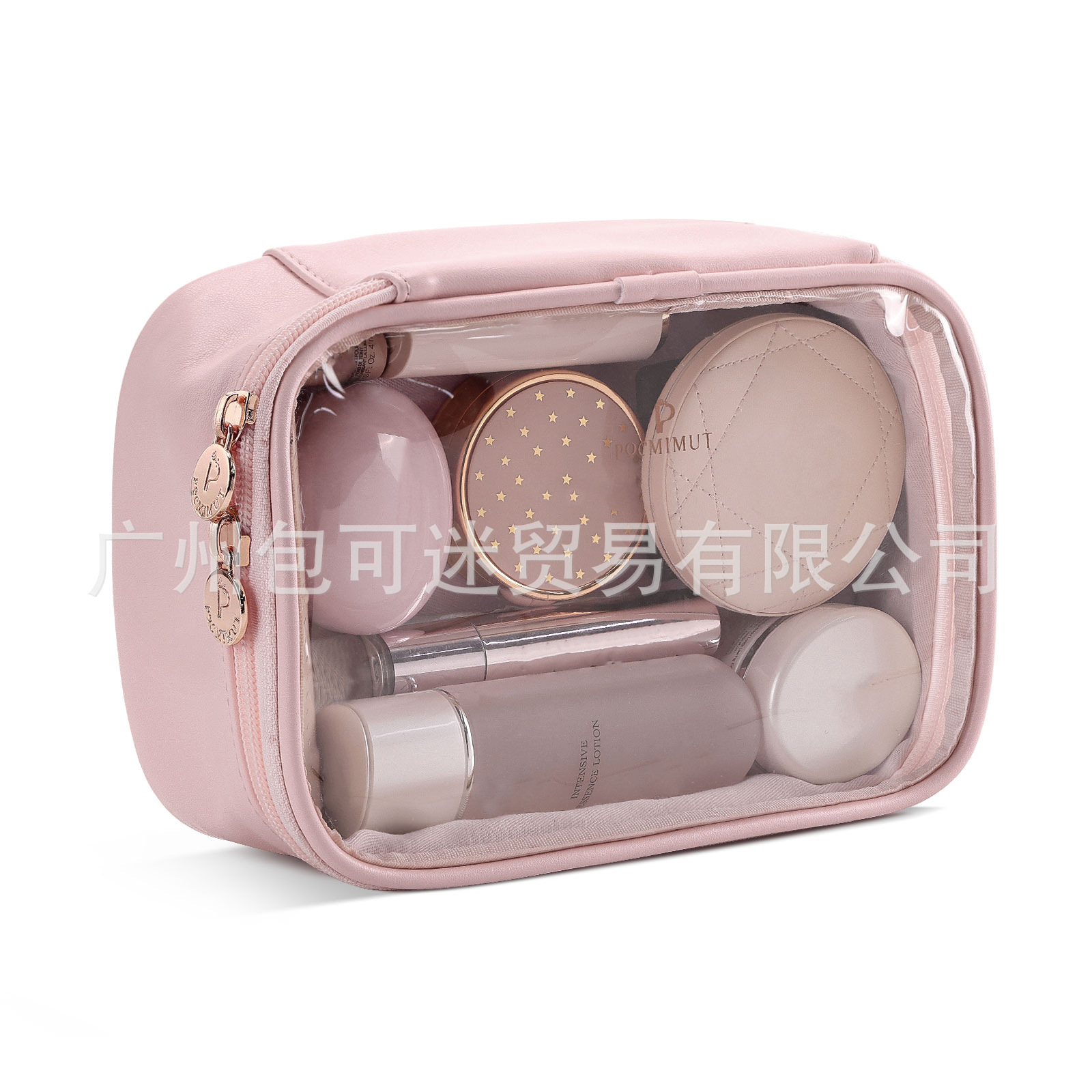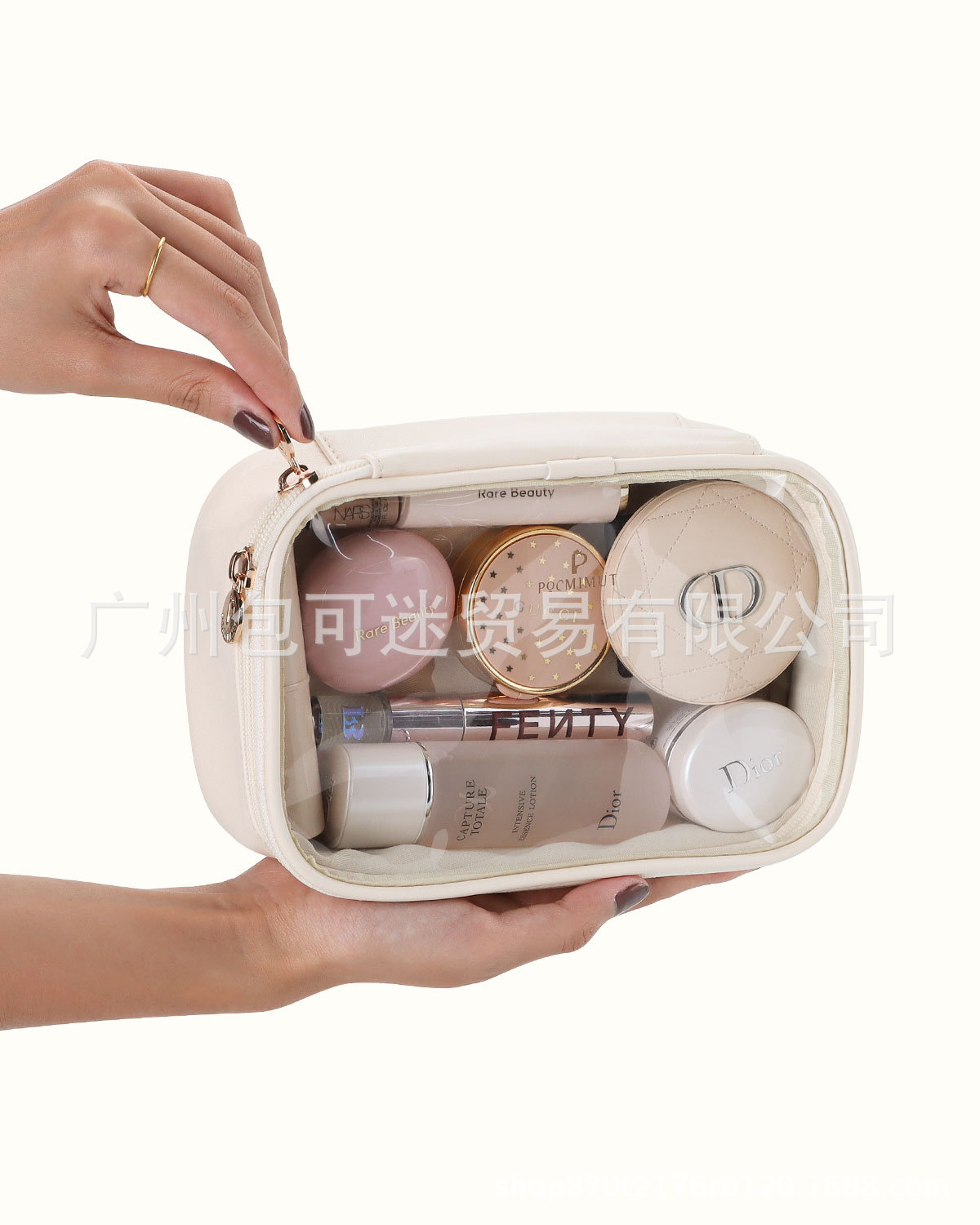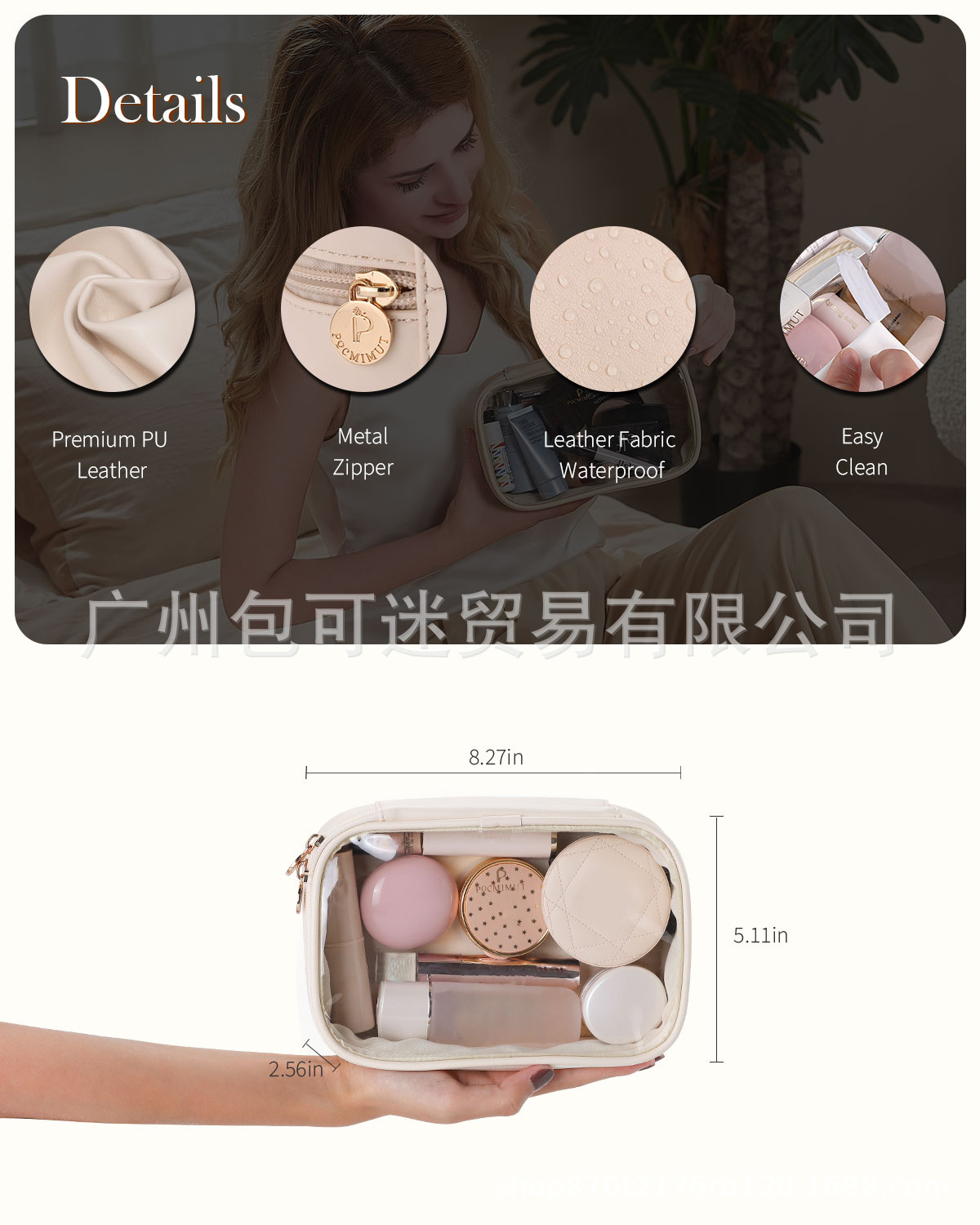 국경 간 Amazon 인기 PU 가죽 투명 여행 필수 화장품 가방 보관 가방 세면 용품 가방
