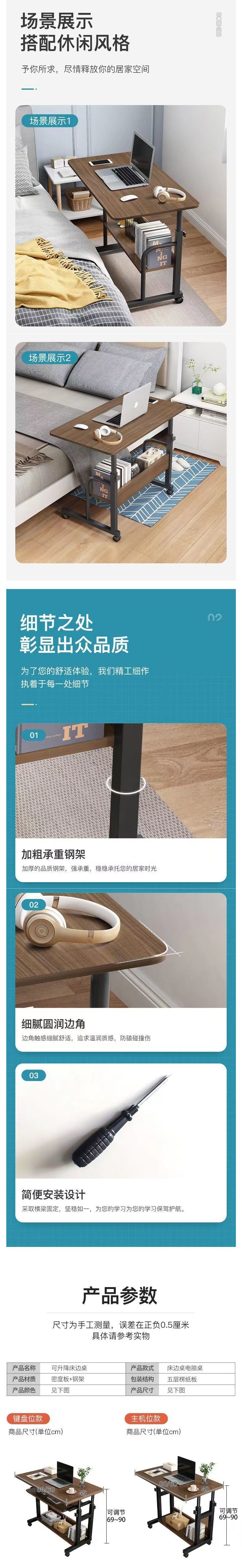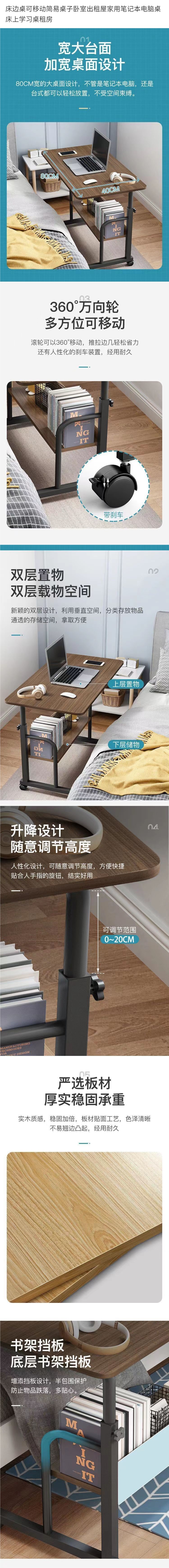 침대 옆 테이블 이동식 간이 테이블 침실 임대 주택 가정용 노트북 테이블 침대 학습 테이블 임대