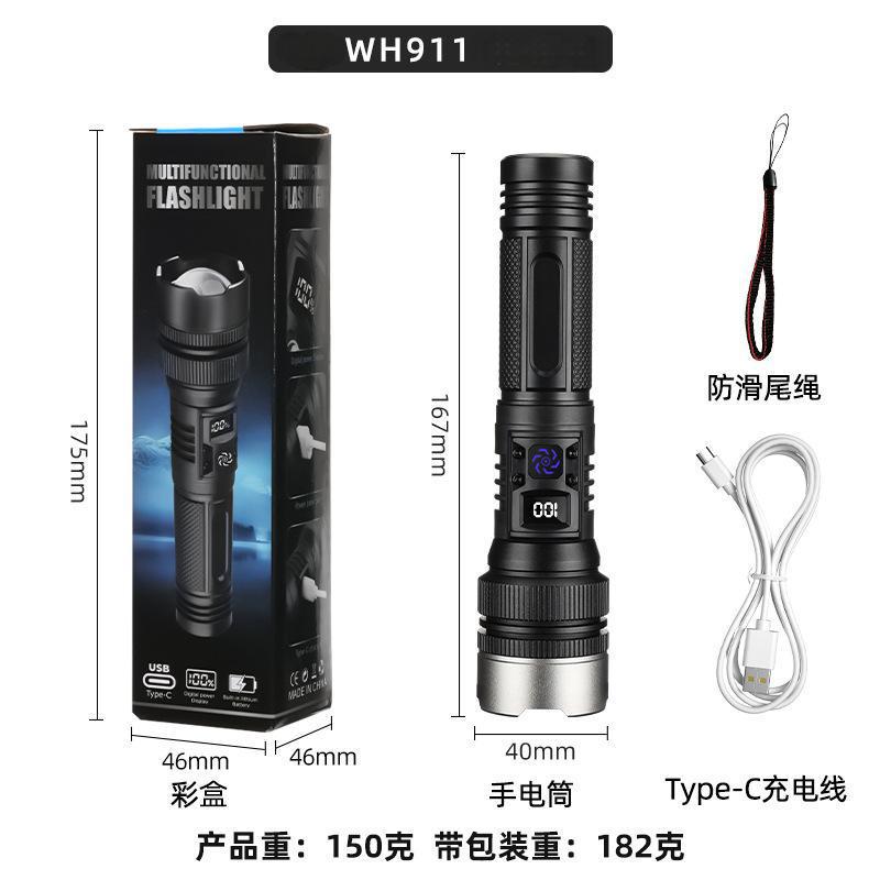 야외 강한 빛 조명 손전등 usb 충전식 야외 장거리 텔레스코픽 줌 스카이 포탄 전술 전기 디스플레이 손전등스토어 가기