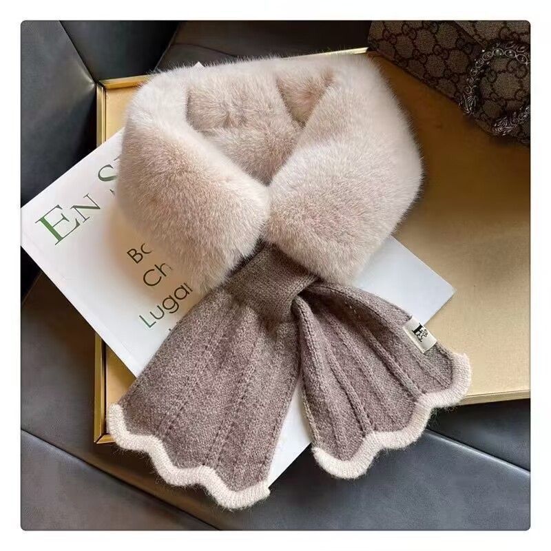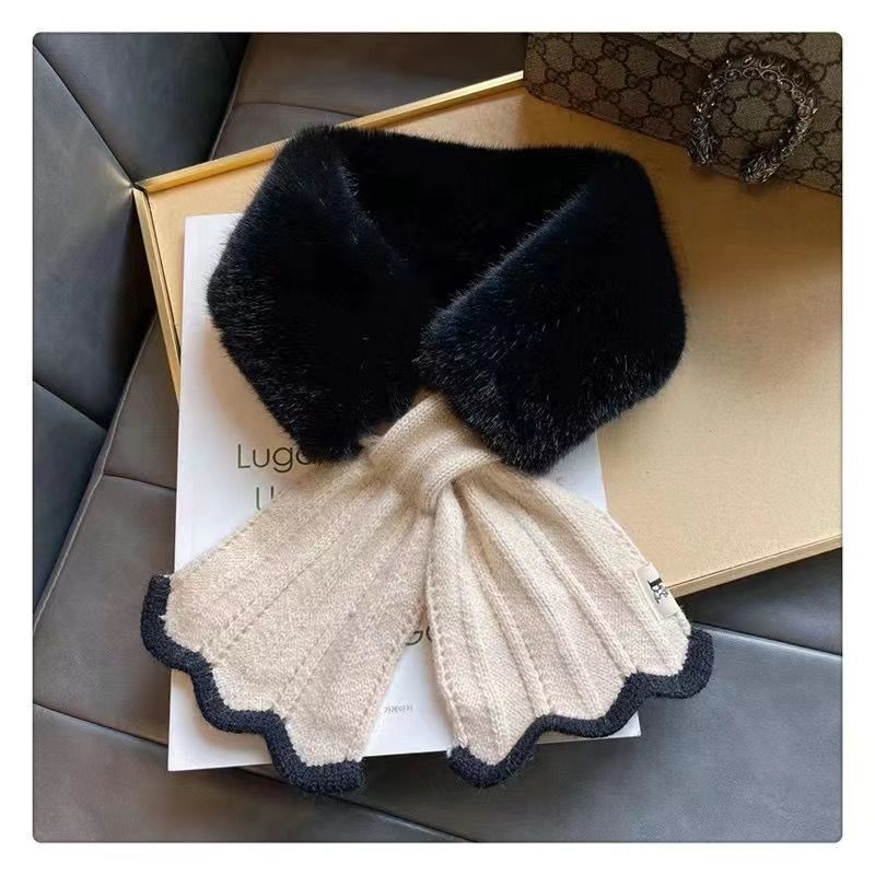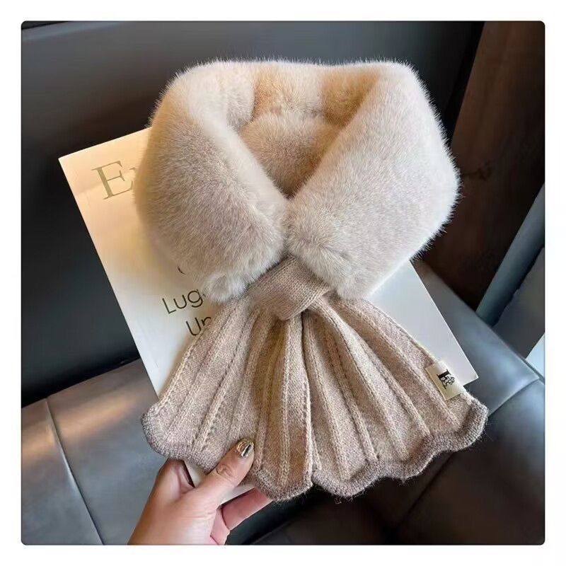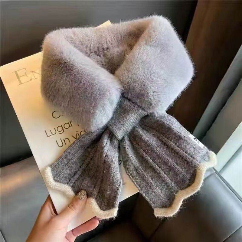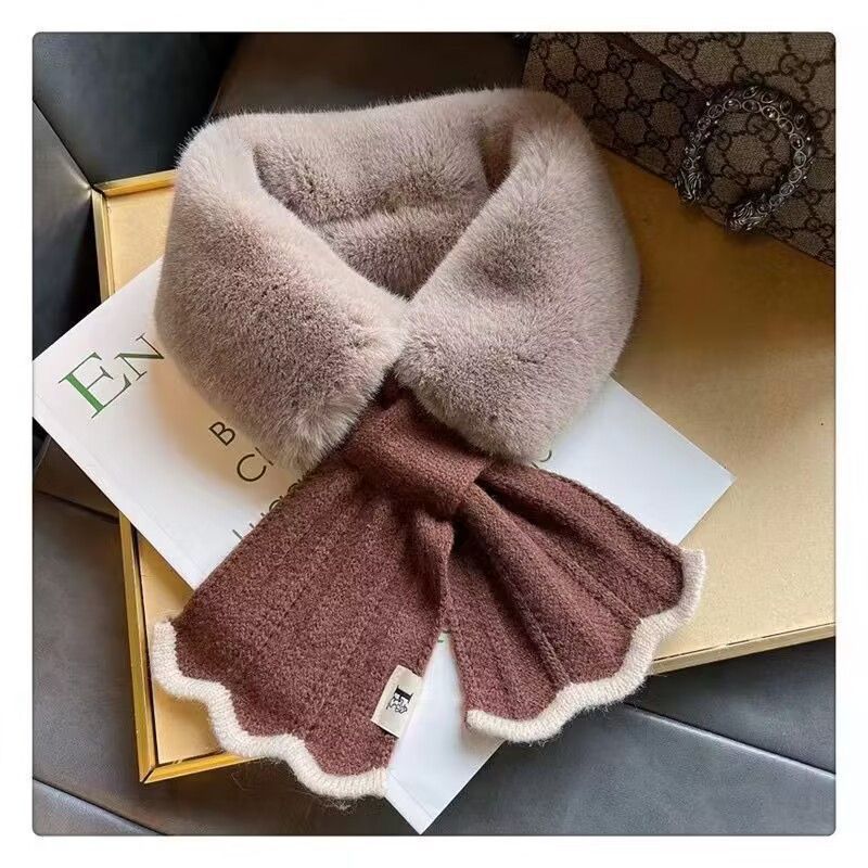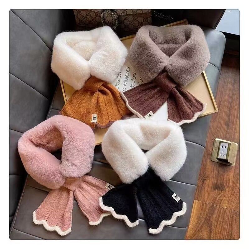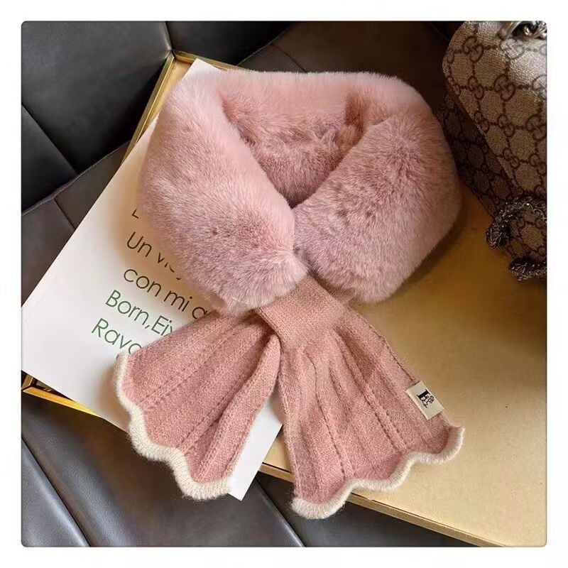 여성용 플러시 스카프 2024 새로운 겨울 한국 스타일 분위기 귀여운 다용도 따뜻한 크로스 모피 칼라 스카프 목 보호대