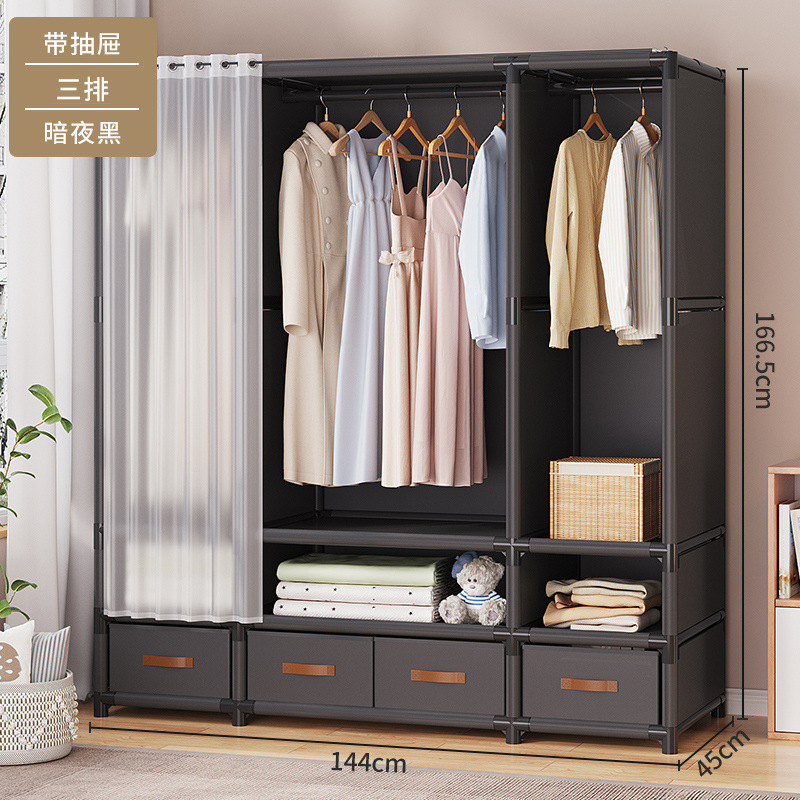 가정용 침실을 위한 간단한 옷장, 견고하고 내구성이 뛰어난 천 옷장, 임대실 옷 보관함, 다기능 옷장 보관함