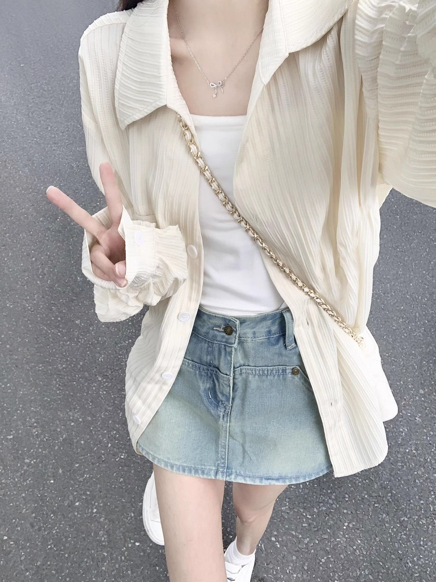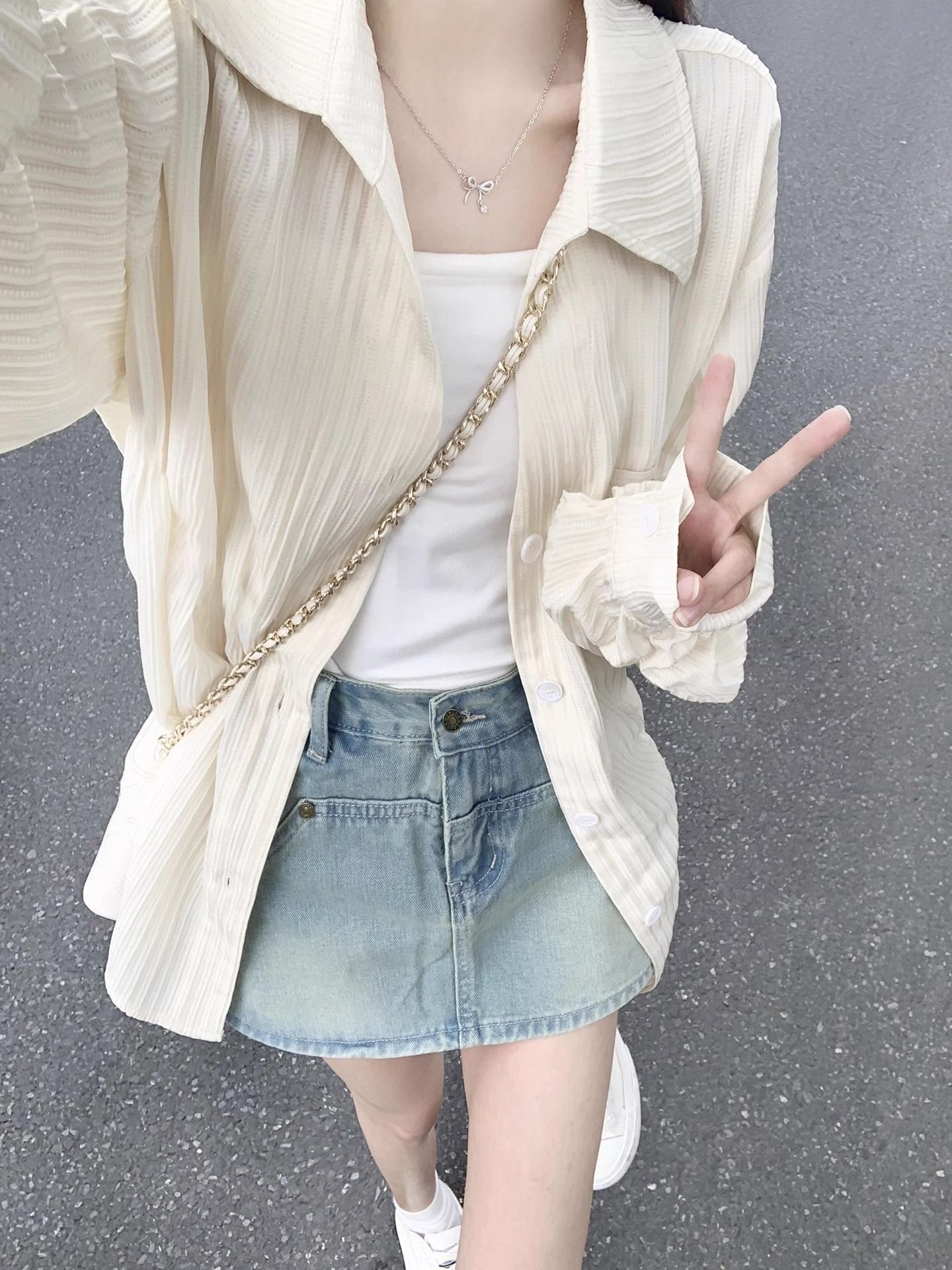 살구색 자외선 차단 셔츠 카디건 얇은 코트 여성 2024 여름 신작 작은 셔츠 얇은 아우터 탑스토어 가기