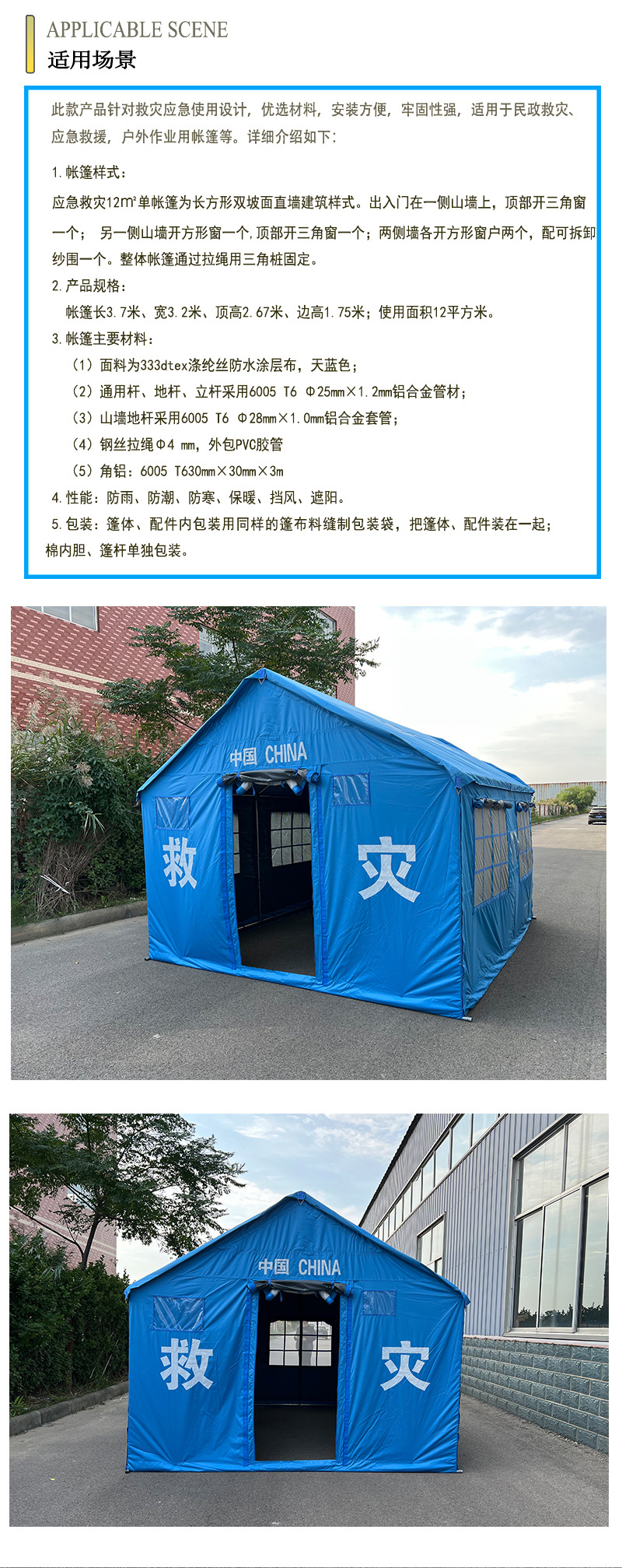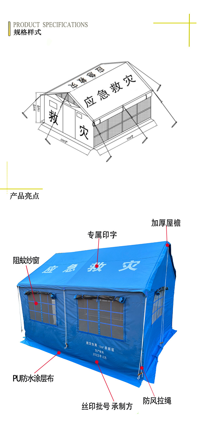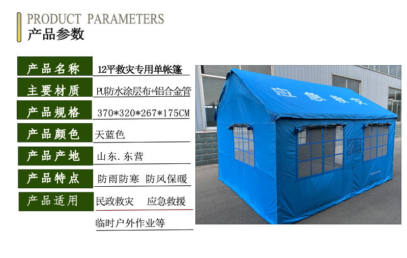 국가 표준 12 평방 단일 텐트 비상 지진 및 홍수 방지 야외 재해 구호 텐트 홍수 방지 따뜻한 구조 비상 텐트