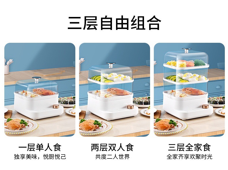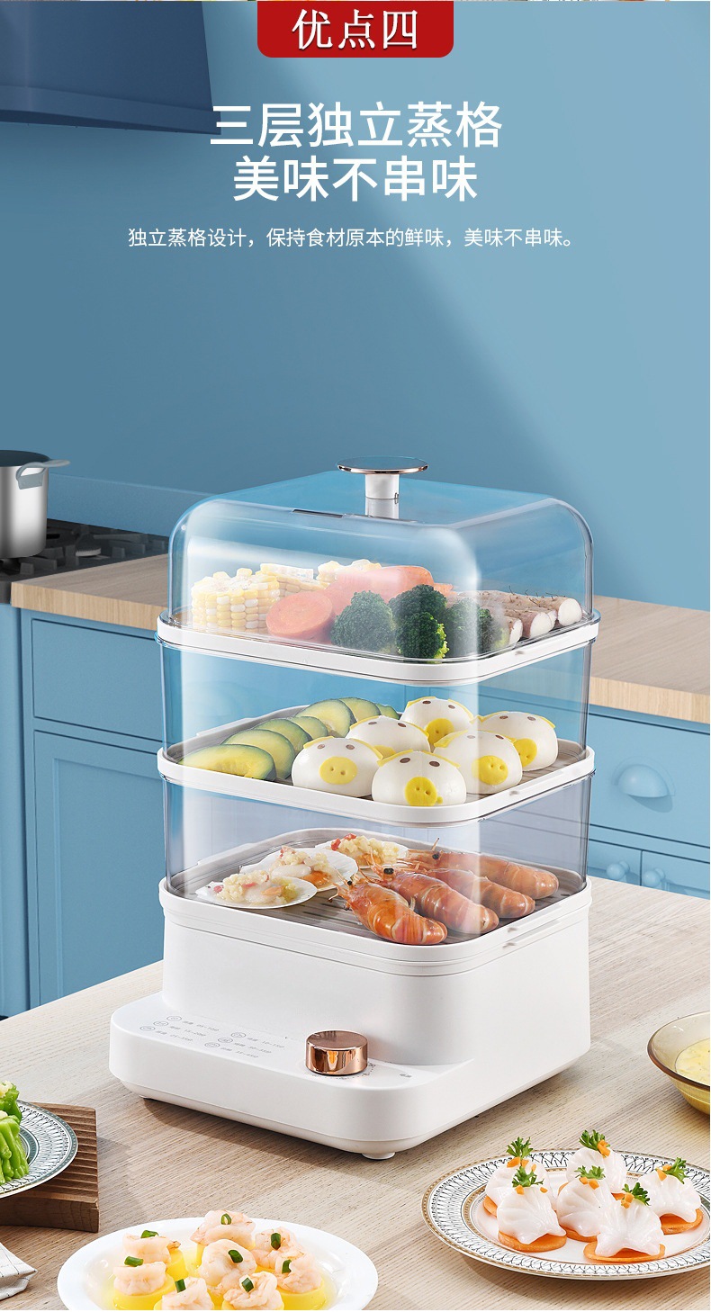 전기 찜통 일체형 다층 찜통 가정용 대용량 다기능 전기 찜통 계란 찜통 3층 아침 식사 기계
