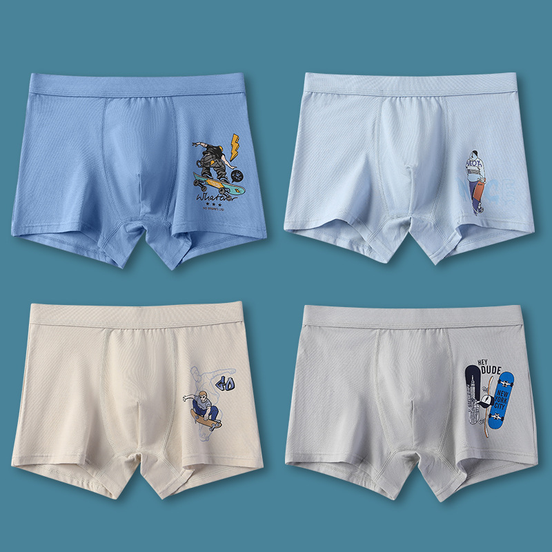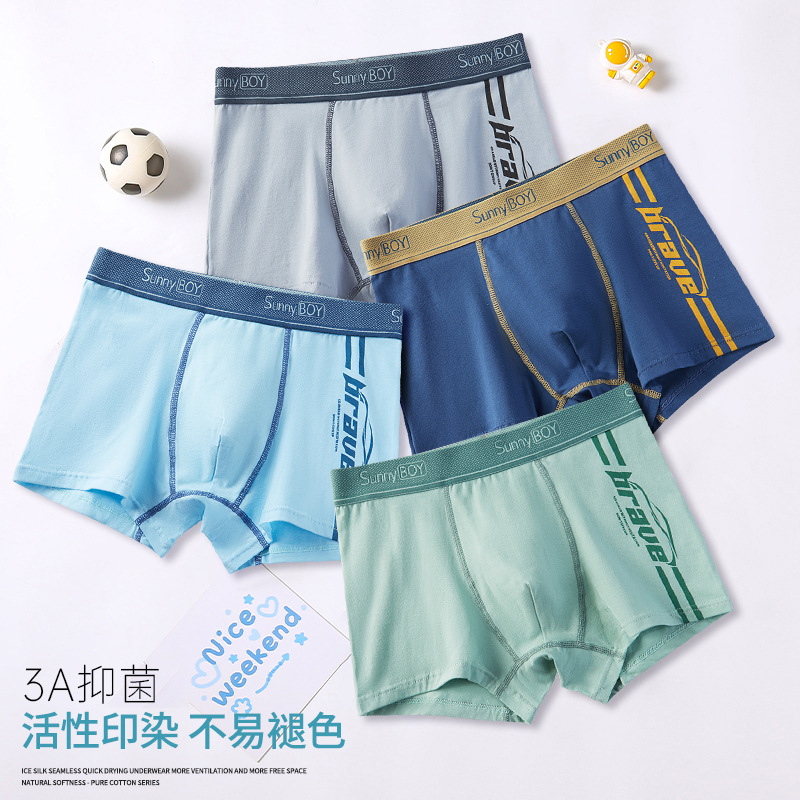 청소년 속옷 A급 면 사각팬티 항균 플랫앵글 미드웨이스트 중대형 아동 학생용 속옷 여름용 얇은 스타일스토어 가기