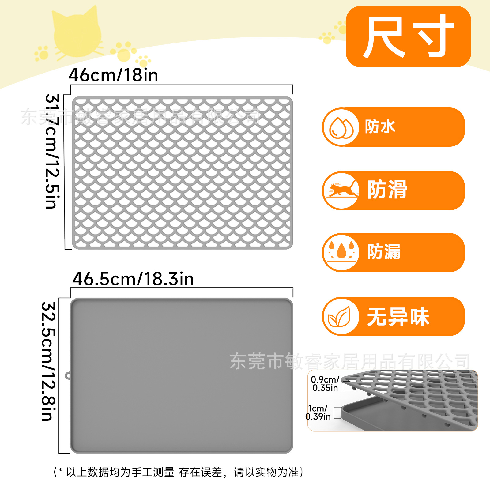 • 실리콘 이중층 고양이 모래 매트
