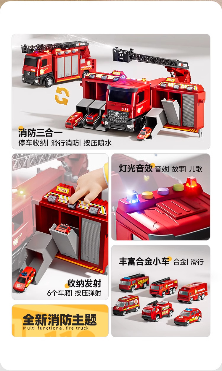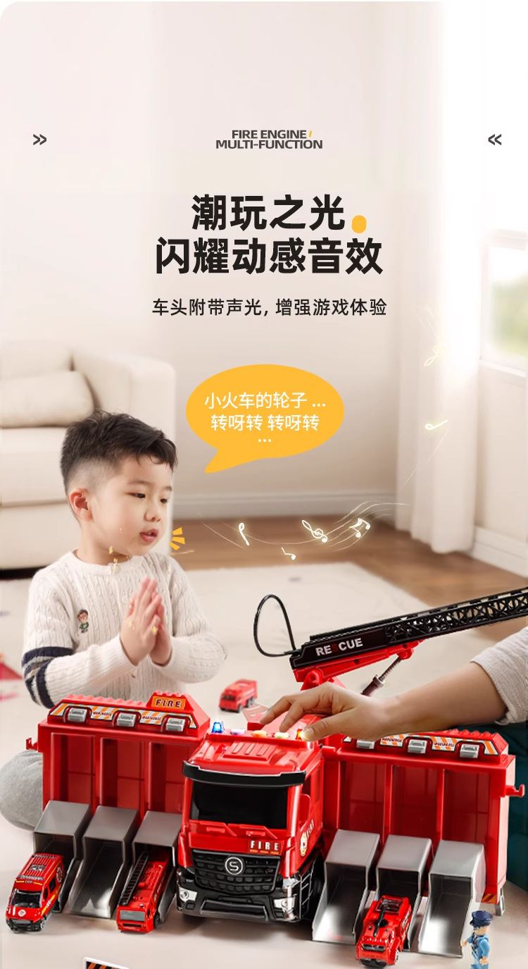 샘의 동일한 어린이 다기능 소방차 장난감 변형 접이식 보관 캐터링 자동차 소년 장난감 핫 세일