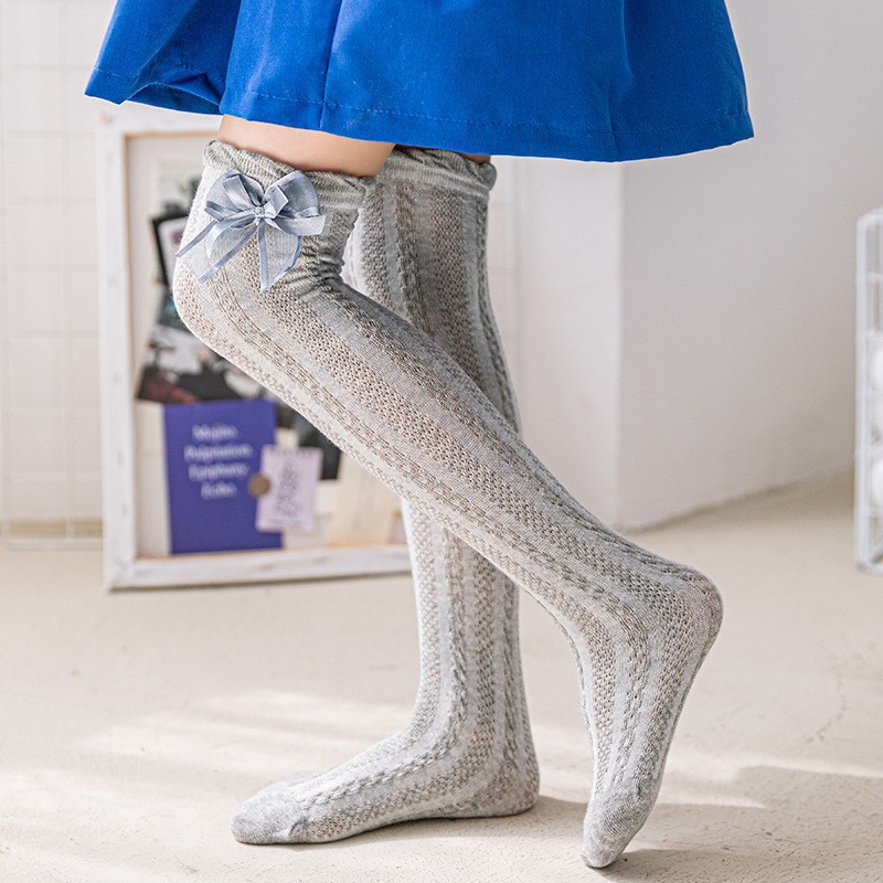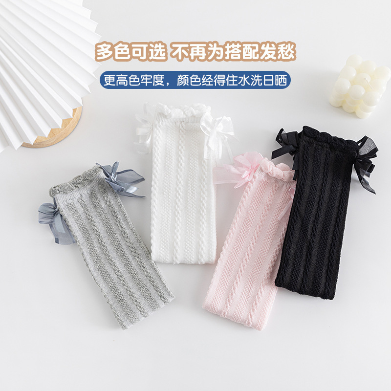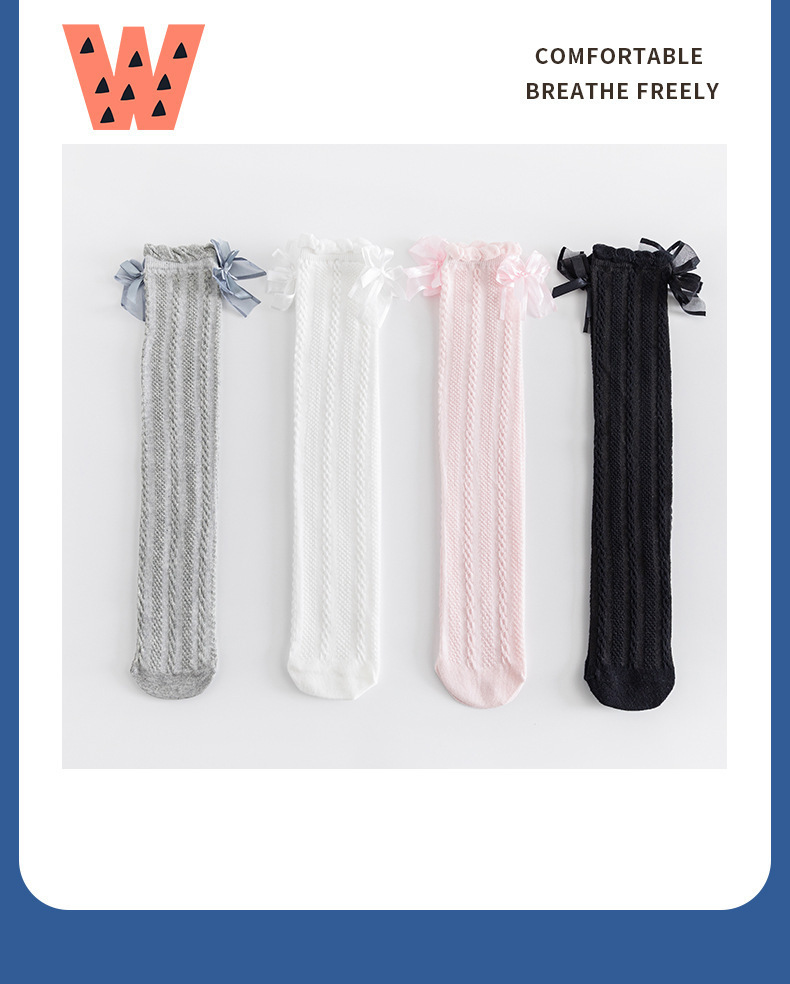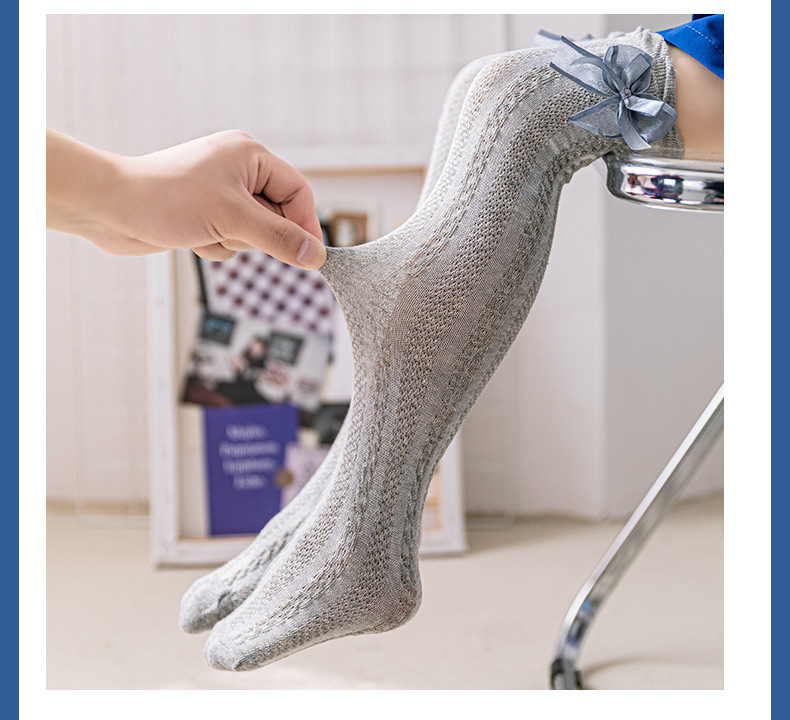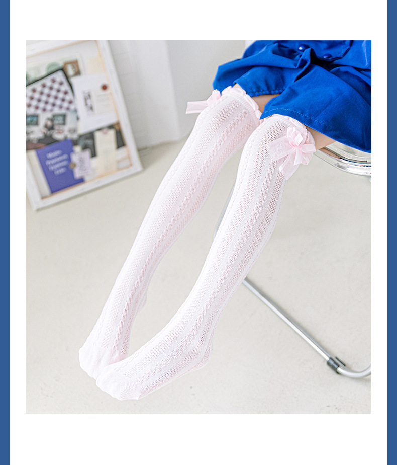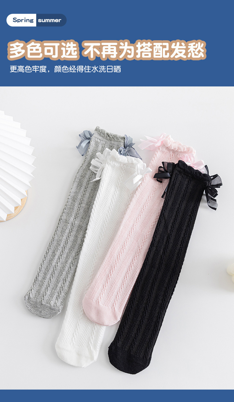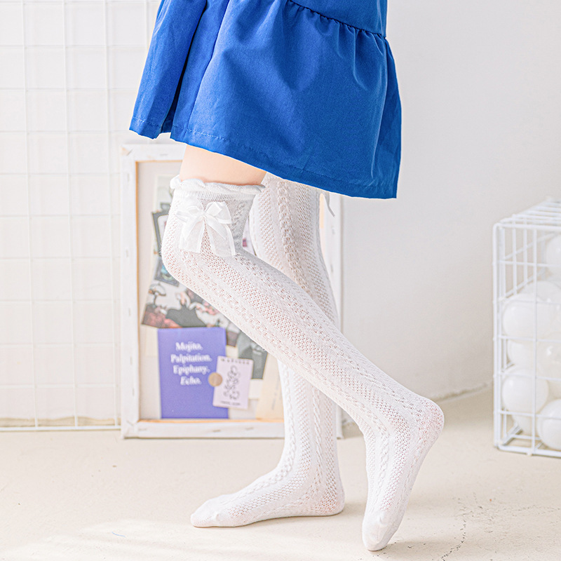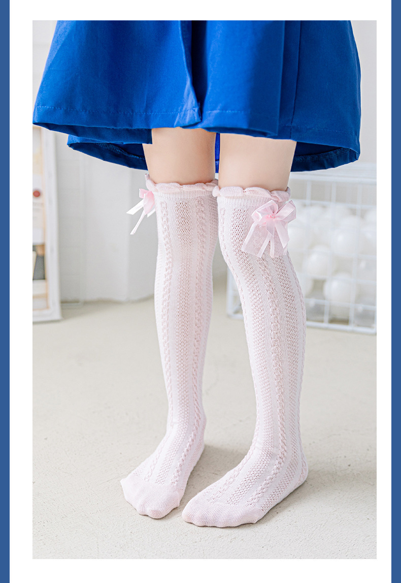 여아 양말, 스타킹, 여름 얇은 아기 리본 무릎 위 양말, 메쉬 양말, 통기성 공주 양말, 단색