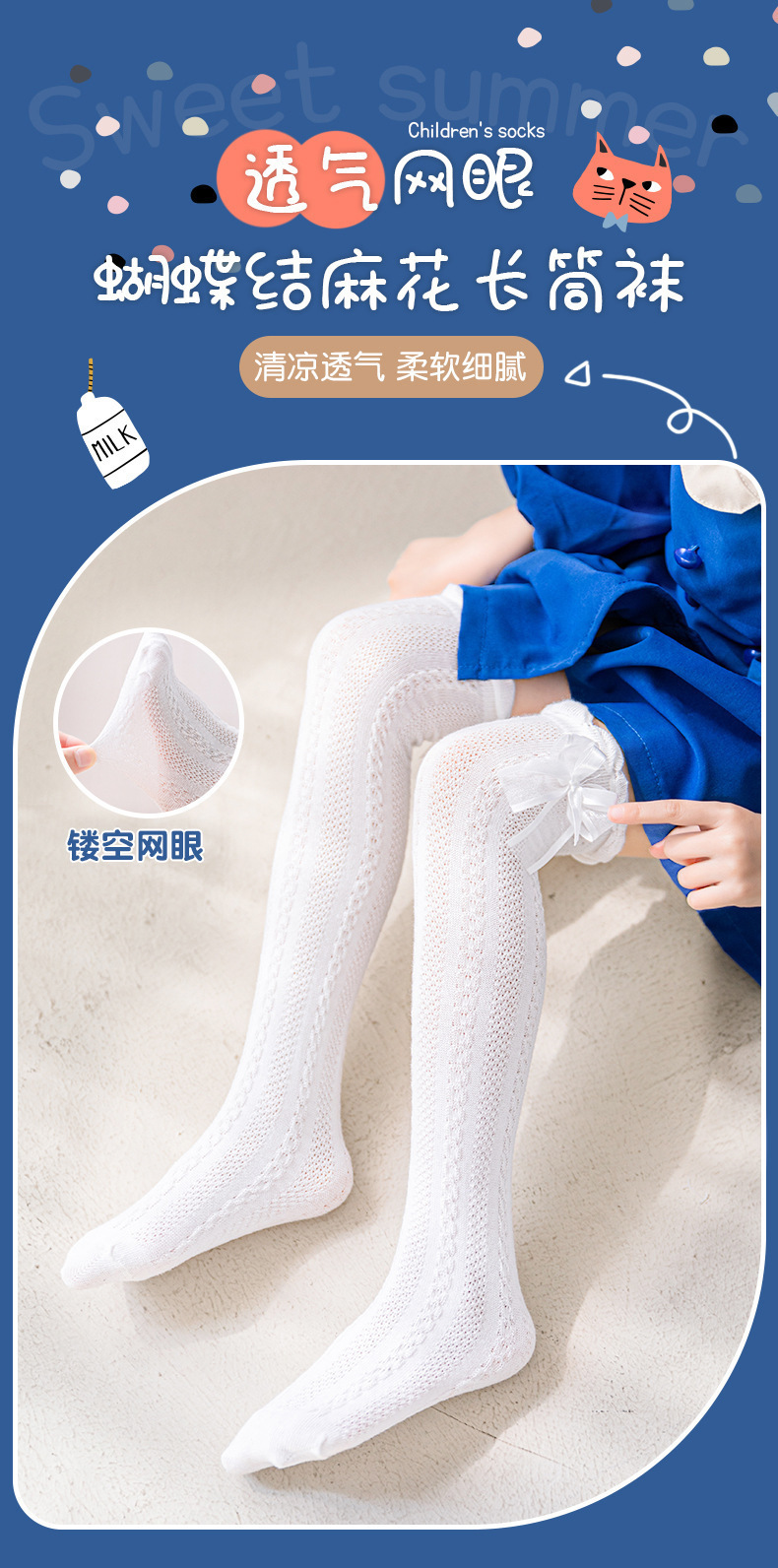 여아 양말, 스타킹, 여름 얇은 아기 리본 무릎 위 양말, 메쉬 양말, 통기성 공주 양말, 단색스토어 가기