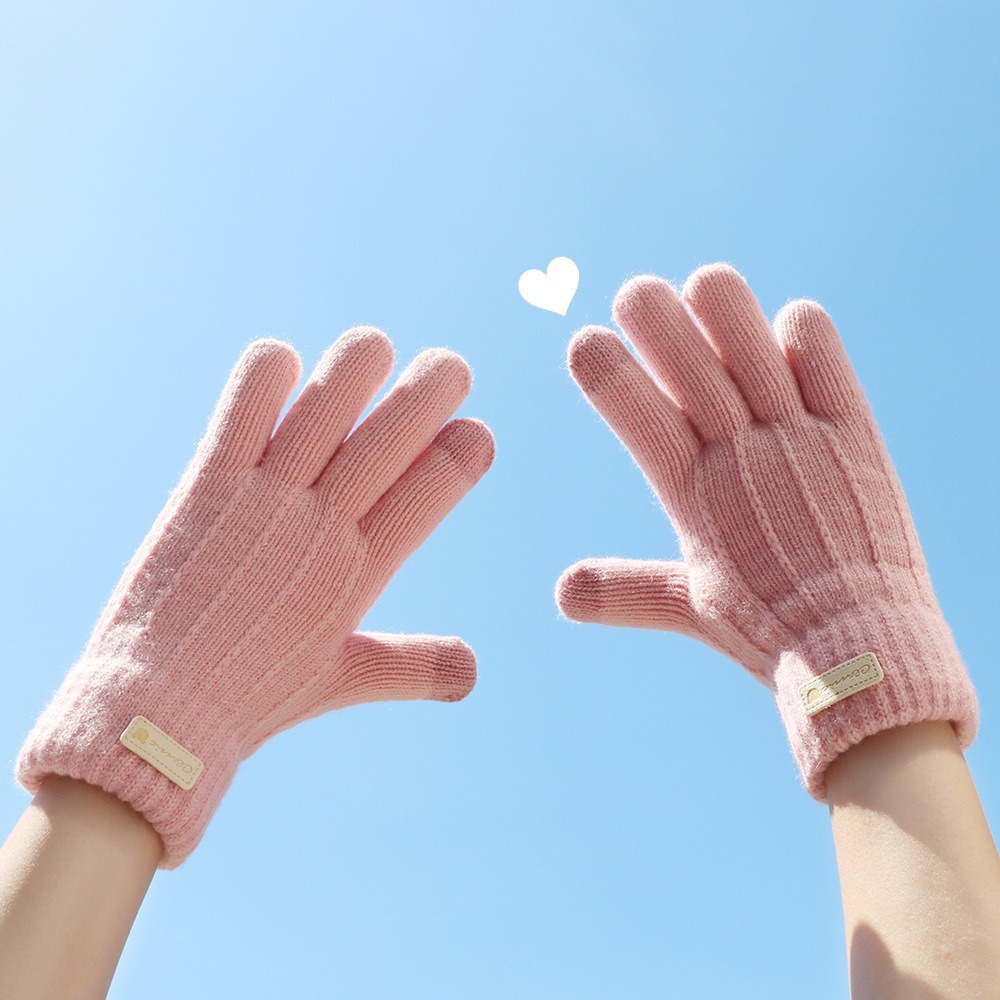 2025 새로운 플러시 니트 장갑 여성 겨울 따뜻한 터치 스크린 야외 두꺼운 사이클링 더블 레이어 장갑 도매스토어 가기