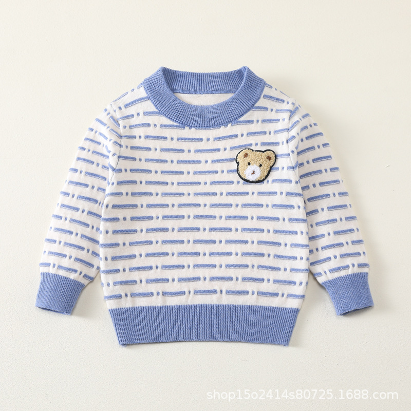 아동 의류 소년 가을, 겨울 줄무늬 스웨터 풀오버 캐주얼 아기 소년 만화 줄무늬 탑 스웨터