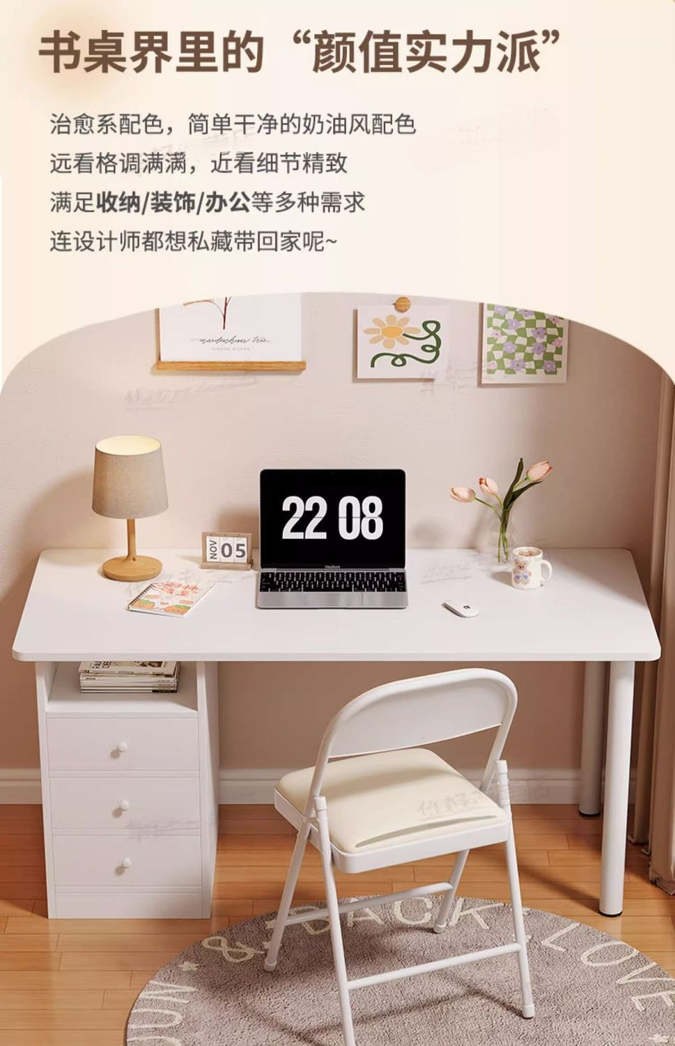 • 업그레이드된 Yunduo 화이트 컴퓨터 책상 길이 100cm 자체 설치 -
