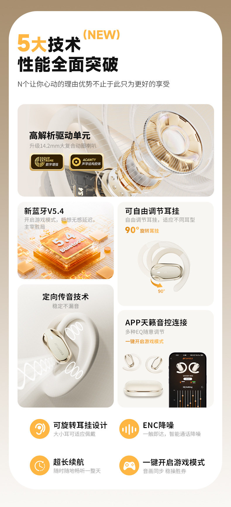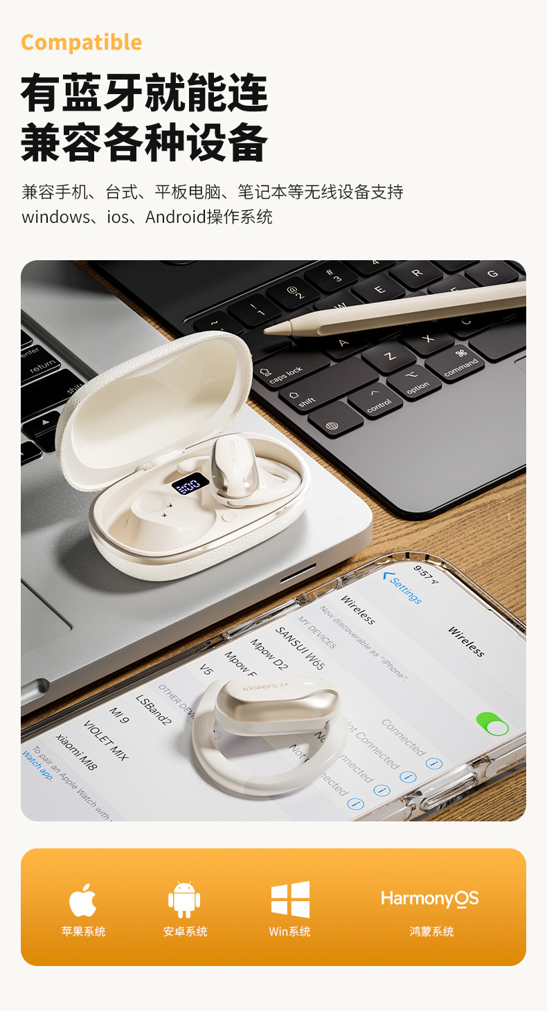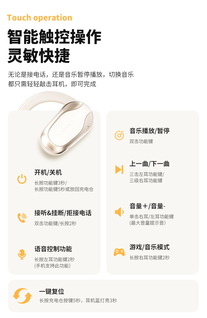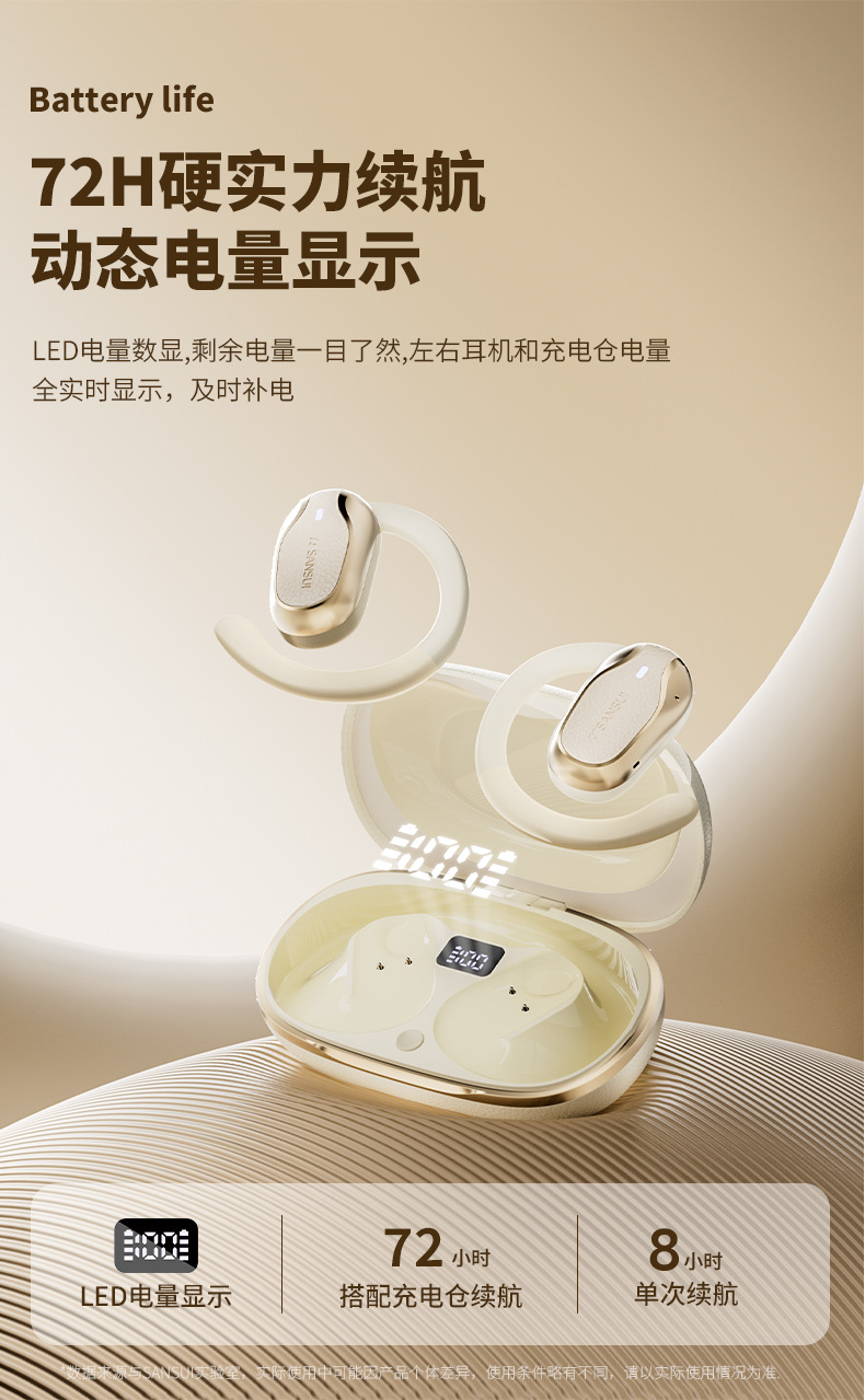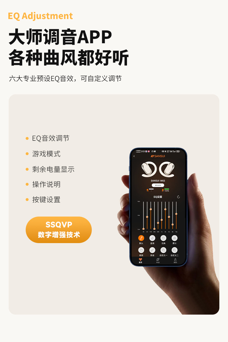 Shanshui Bluetooth 헤드셋 W65 새로운 조정 가능한 귀고리 APP 포지셔닝 및 소음 감소 특수 매우 긴 배터리 수명 및 높은 외관