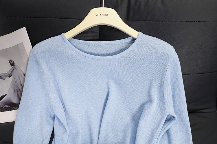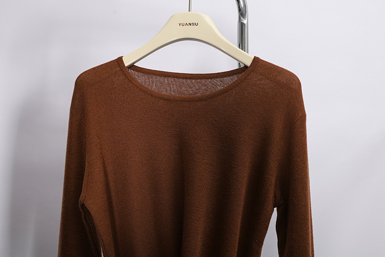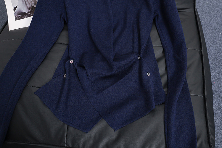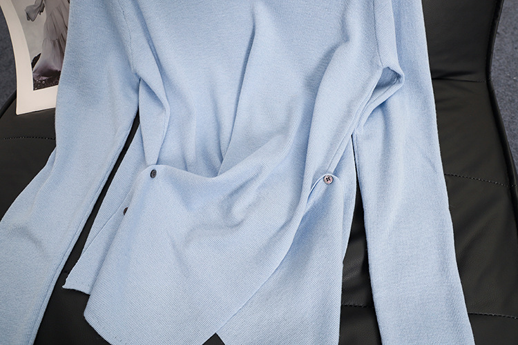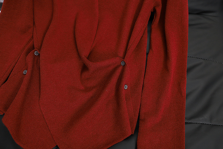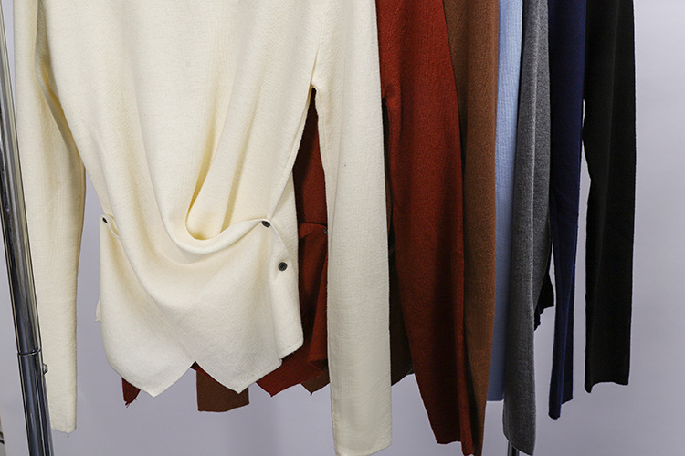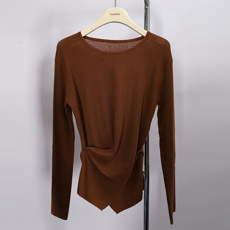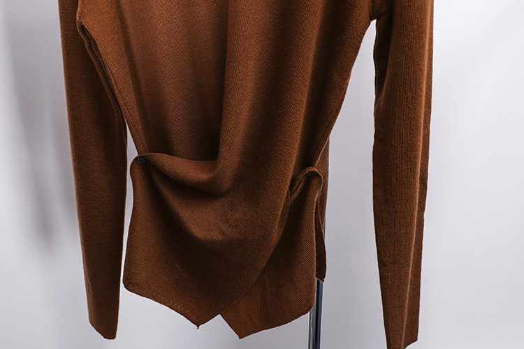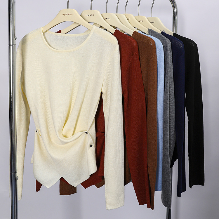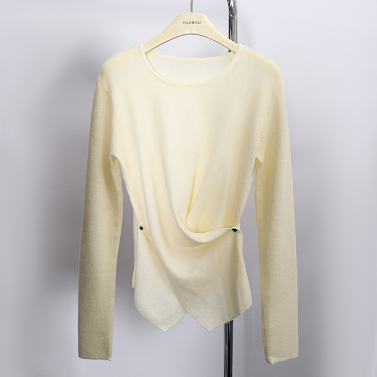 편안하고 부드럽고 패셔너블한 라운드 넥 긴팔 탑, 틈새 디자인, 허리 크로스 버튼 여성용 울 스웨터스토어 가기