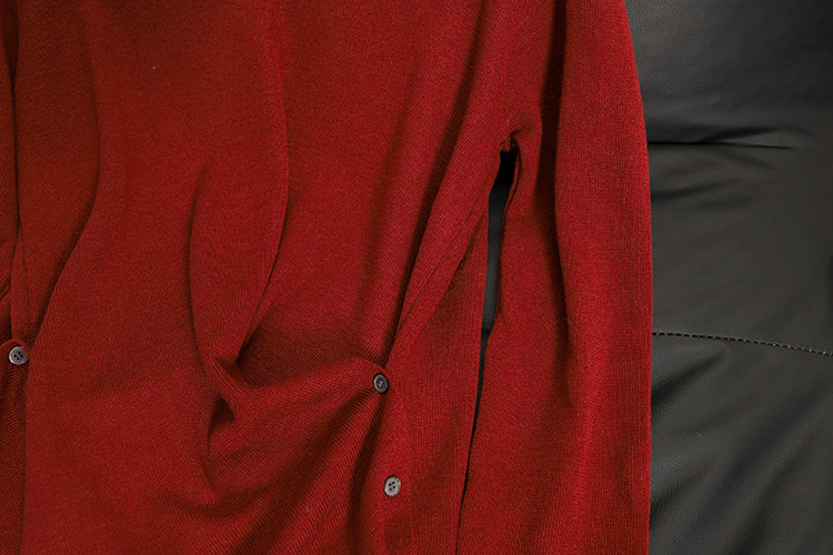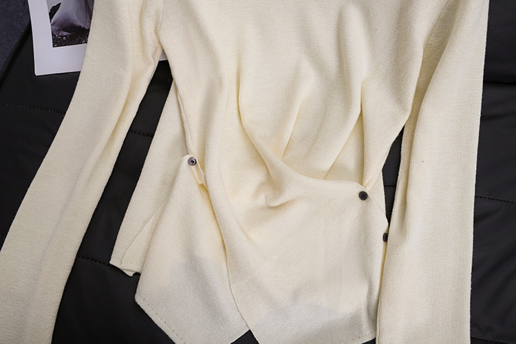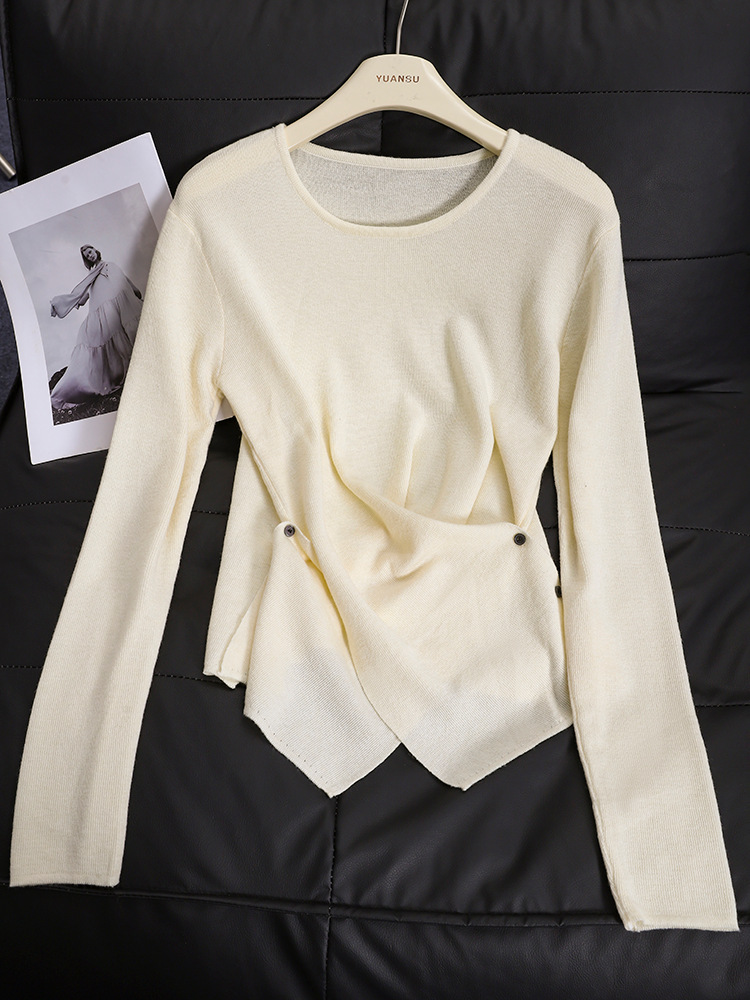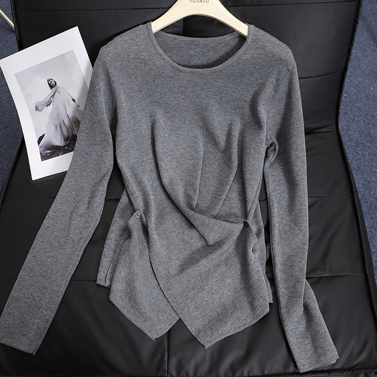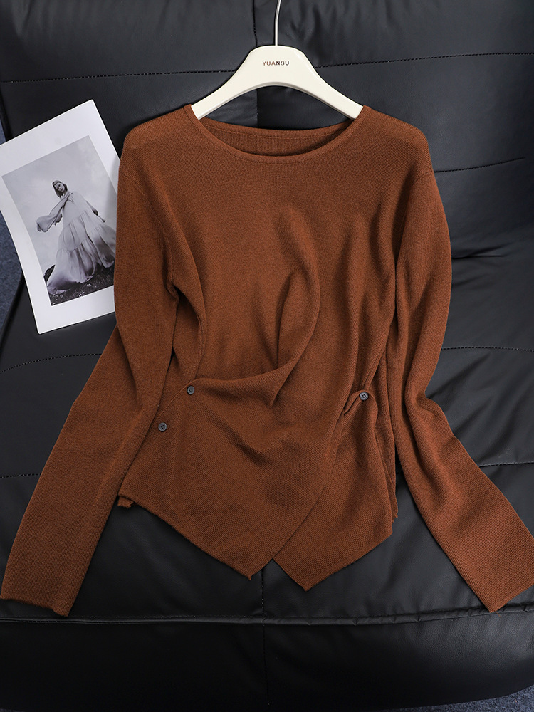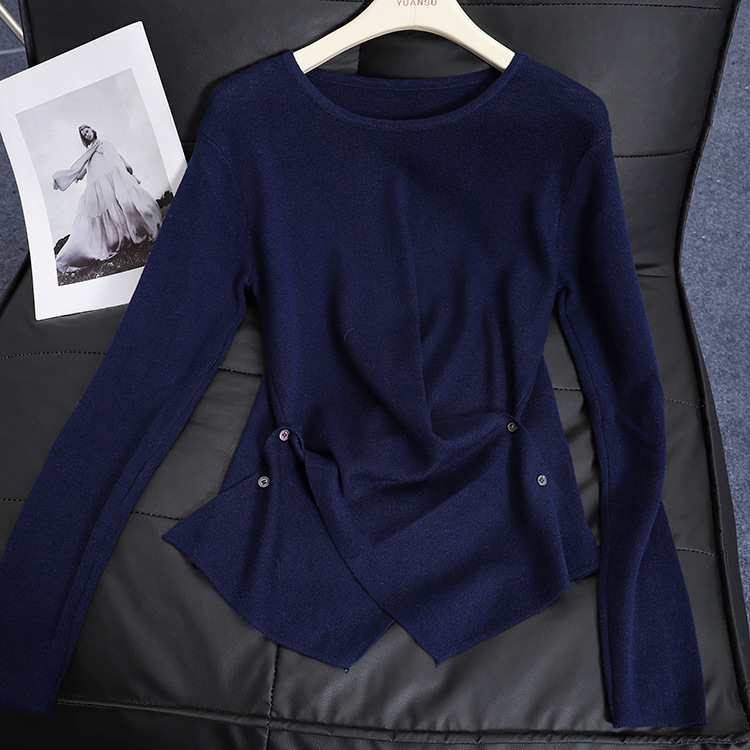 편안하고 부드럽고 패셔너블한 라운드 넥 긴팔 탑, 틈새 디자인, 허리 크로스 버튼 여성용 울 스웨터