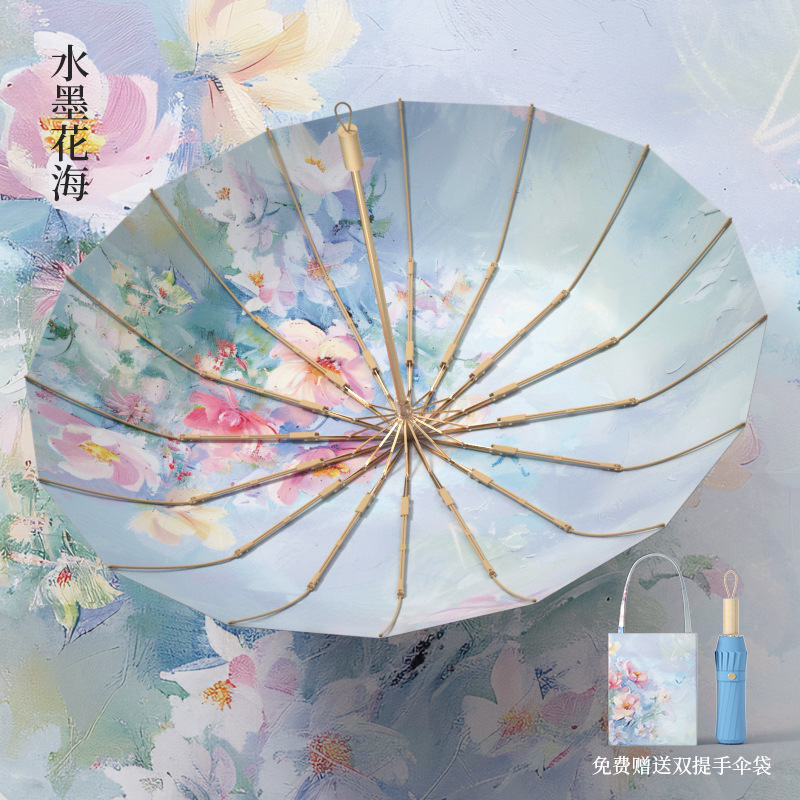 16본 컬러풀한 고무 태양 우산, 신선하고 비오는 날에도 사용 가능한 자외선 차단 우산, 70% off 더블 접이식 대형 우산스토어 가기