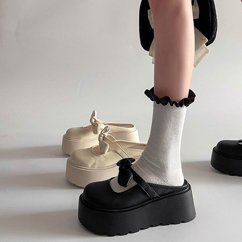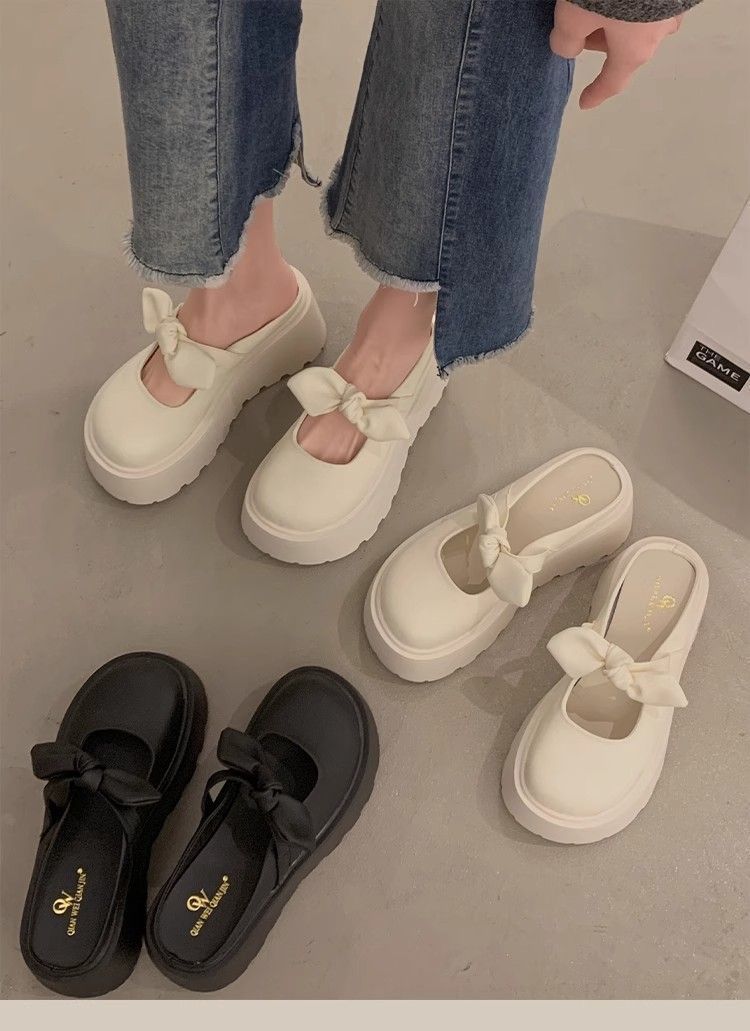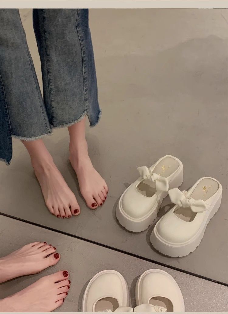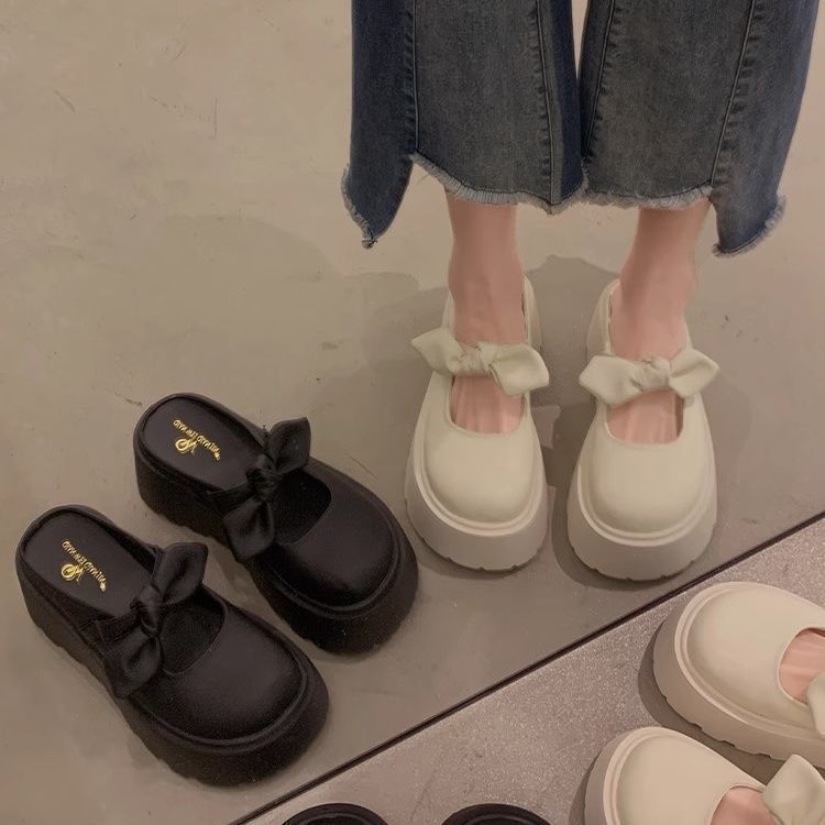 스커트와 잘 어울리는 패셔너블한 버켄스탁 신발 2025 봄 신상 라운드 토 메리제인 슈즈 레트로 두꺼운 밑창 얕은 슬리퍼스토어 가기