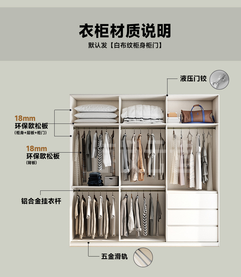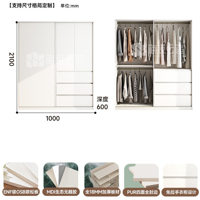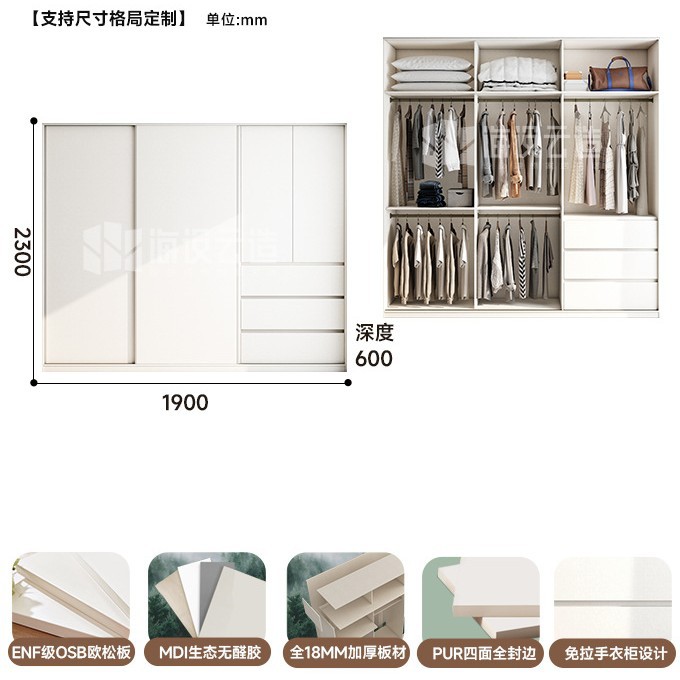 분할 슬라이딩 도어 옷장 작은 아파트 단단한 나무 ENF 등급 침실 홈 핸들리스 슬라이딩 도어 대형 옷장스토어 가기