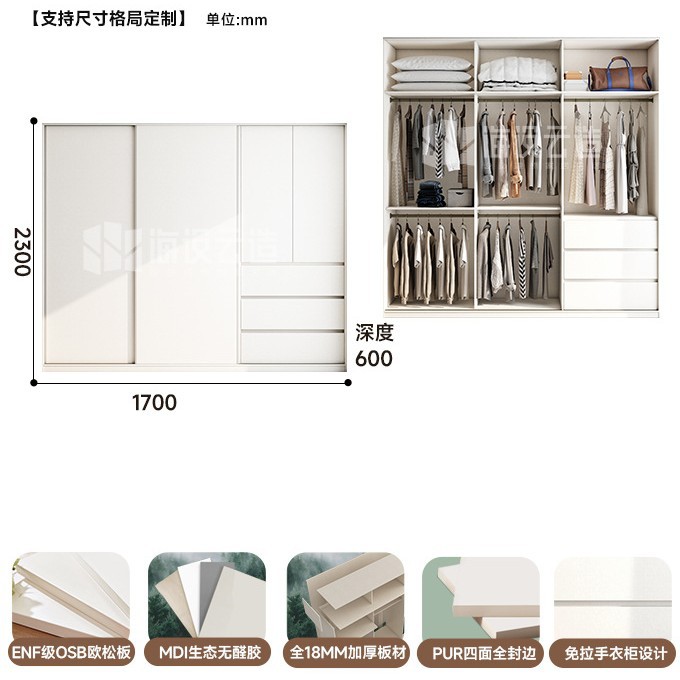 분할 슬라이딩 도어 옷장 작은 아파트 단단한 나무 ENF 등급 침실 홈 핸들리스 슬라이딩 도어 대형 옷장
