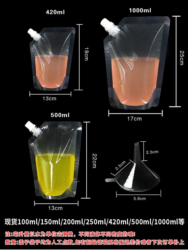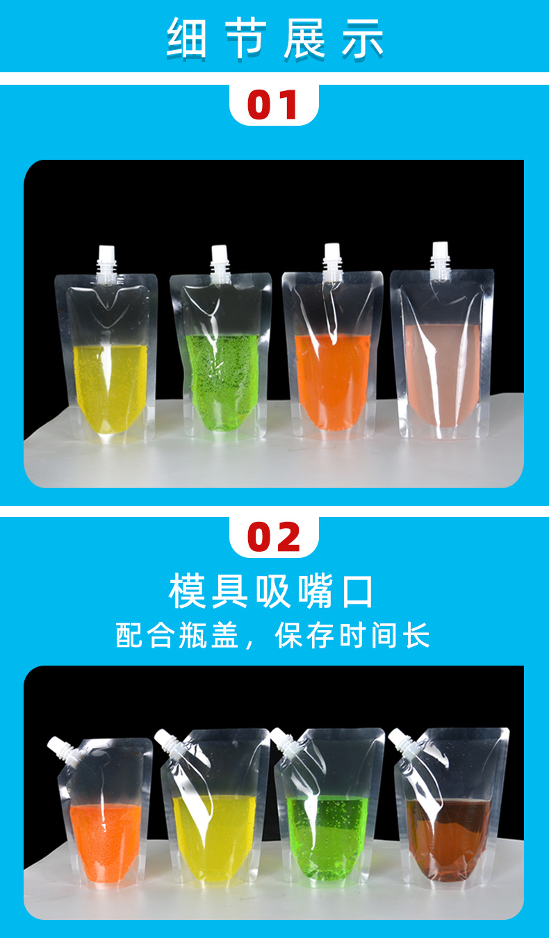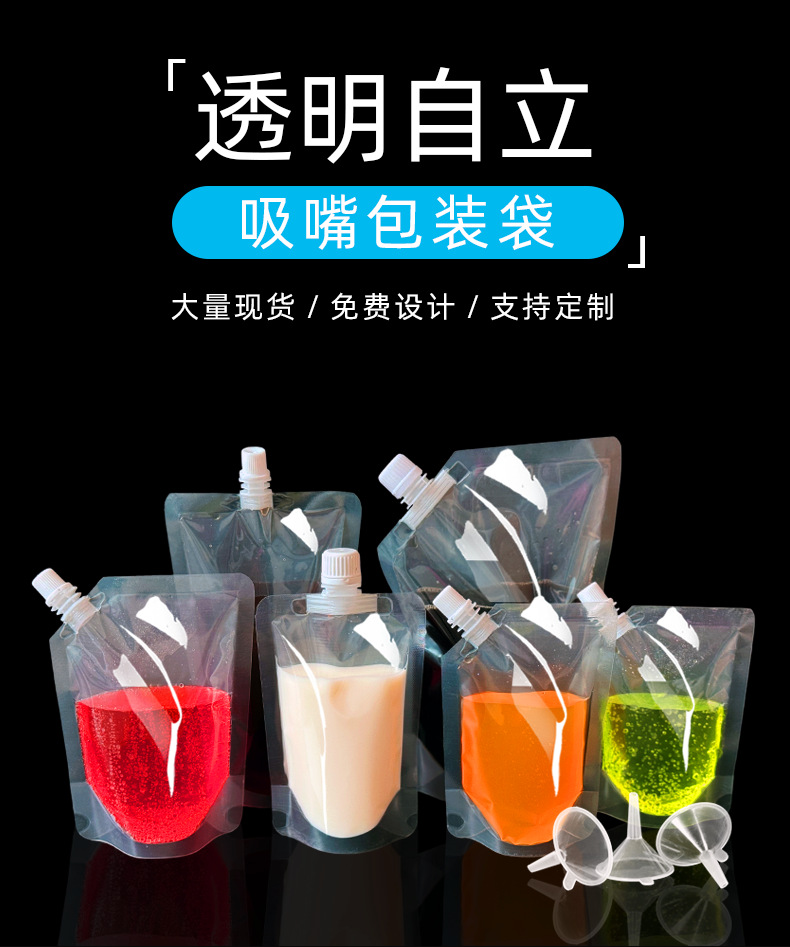 跨境优选专供自立吸嘴袋一次性饮料袋螺蛳粉酸梅汤豆浆袋外卖果汁袋透明吸嘴袋支持分装贴唛箱规齐全