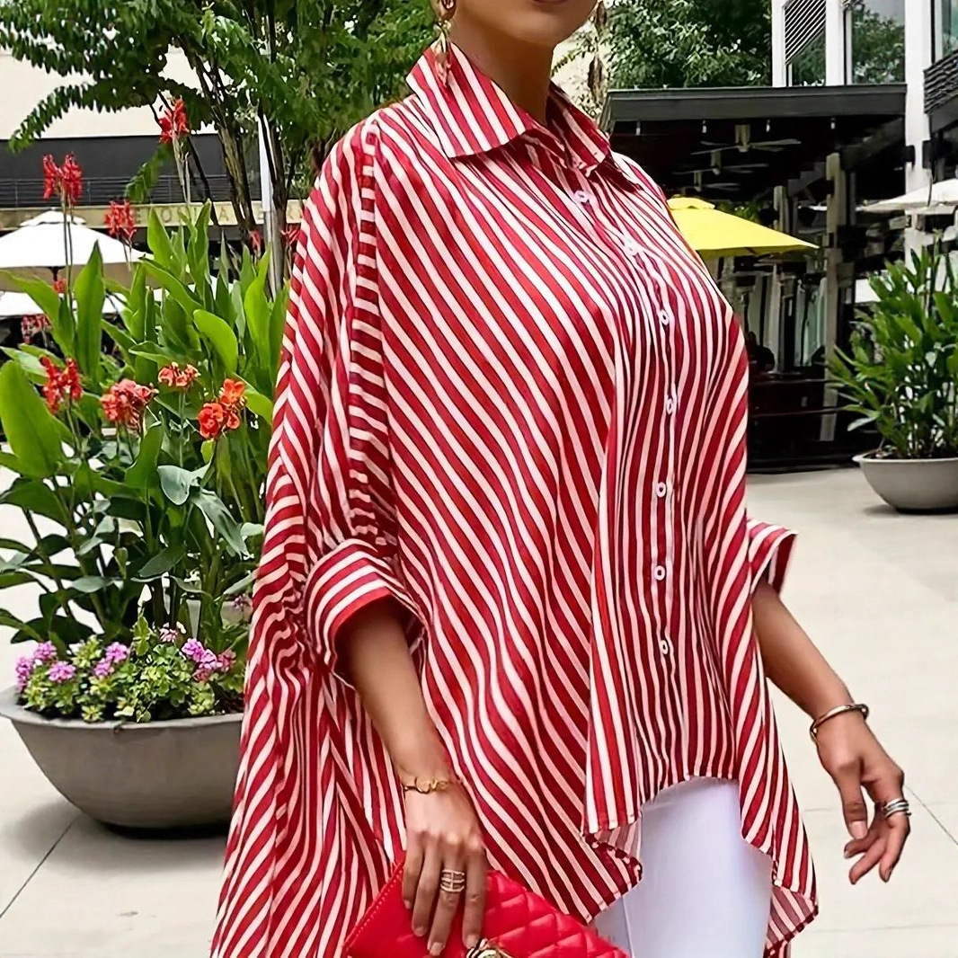 25 유럽과 미국의 국경 간 대외 무역 여성 의류 우아하고 세련된 통근 불규칙한 밑단 점프 슈트 긴팔 셔츠